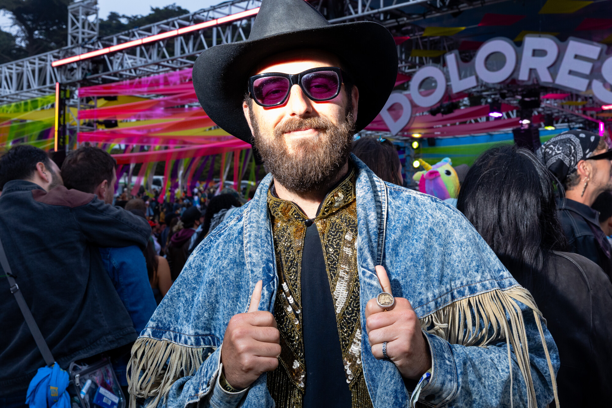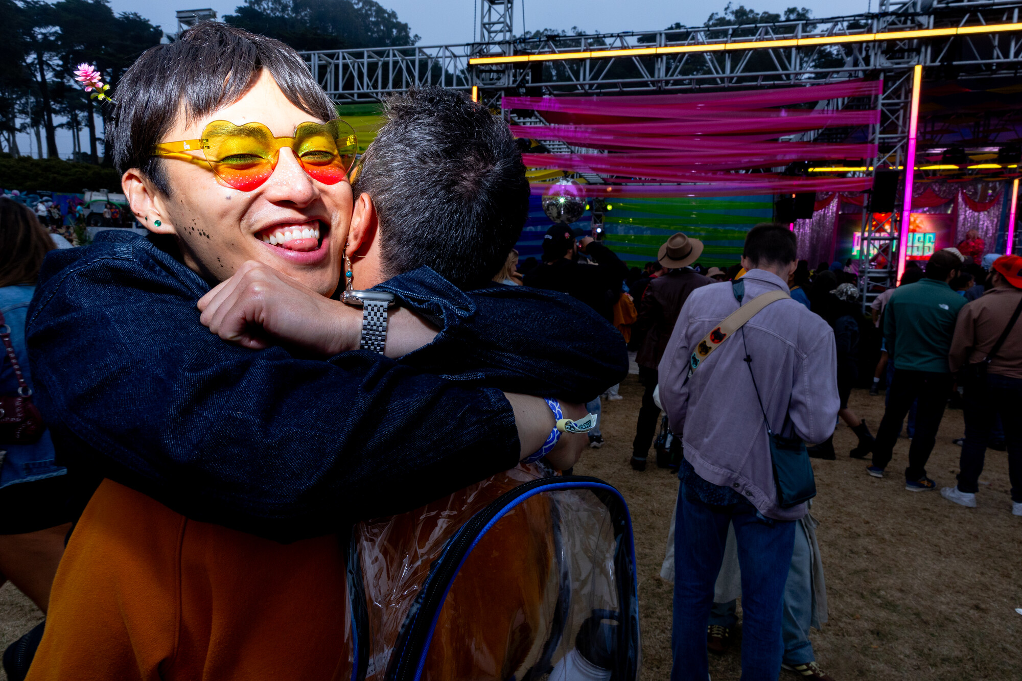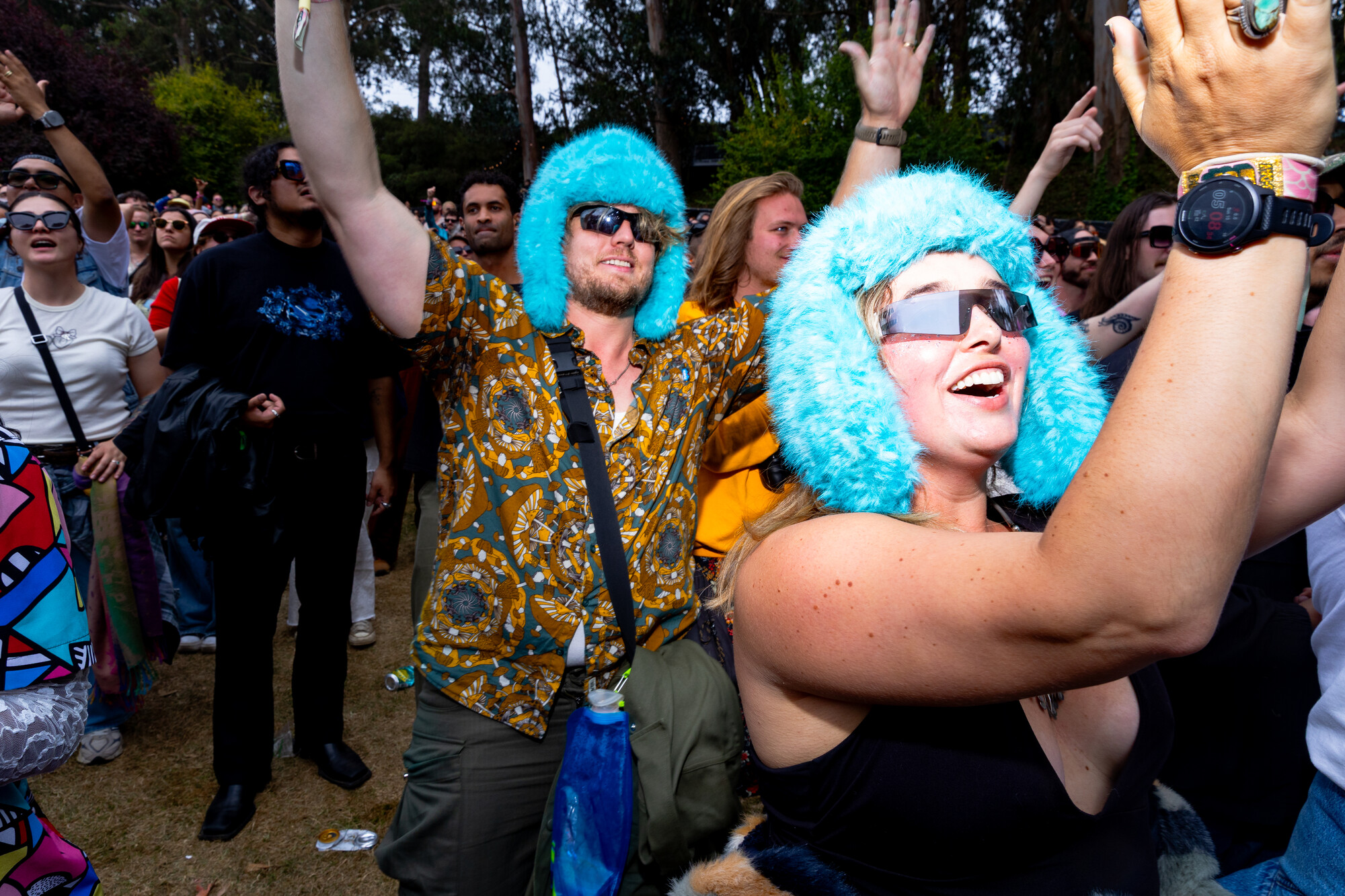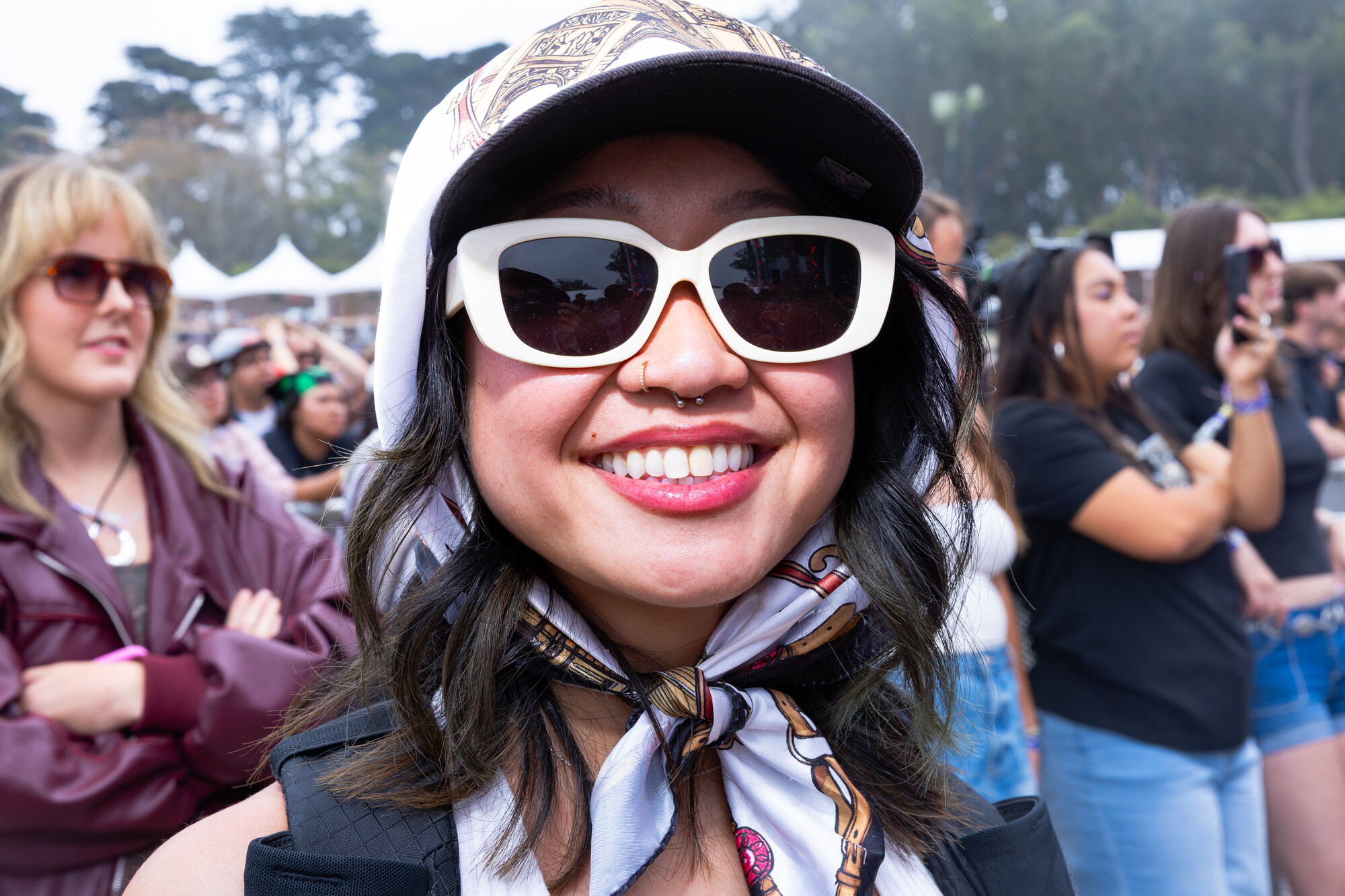 (L–R) Courtney Willoughby, 18, and her sister Sydney Willoughby, 22, wear coordinated orange outfits at Outside Lands on Sunday, August 10, 2025. The pair wanted to match for their first-ever Outside Lands. (Estefany Gonzalez for KQED)Digital KitKat, 34, a Bay Area based DJ, wears a studded Virgin Mary hat to Outside Lands on Saturday, August 9, 2025. Digital KitKat is one of the many local DJ’ who performed at Casa Bacardí during the three day festival. (Estefany Gonzalez for KQED)Angel Moua, 31, wears a bandana and large sunglasses to Outside Lands on Saturday, August 9, 2025. Moua traveled to Golden Gate Park from Sacramento to attend the festival. (Estefany Gonzalez for KQED)Nori Nakayama, right, poses for a portrait as Glass Animals performs at Outside Lands on Saturday, August 9, 2025. Singer Dave Bayley pointed to Nakayama during Glass Animals’ set and and made note that Nakayama attended the bands first ever Bay Area concert several years ago. (Estefany Gonzalez for KQED)Oakland’s Christie O’ Neill, 35, wears a disco ball helmet at Outside Lands on Friday, August 8, 2025. O’ Neill bought the helmet during a trip to Massachusetts and liked it so much she wore it on the plane ride back to California when it didn’t fit in her luggage. (Estefany Gonzalez for KQED)LaRussell poses for a portrait backstage at Outside Lands on Saturday, August 9, 2025. (Estefany Gonzalez for KQED)Daniel Sherman, 36, wears a thrifted fringe jacket to Outside Lands on Saturday, August 9, 2025. Sherman, a regular Oasis patron, was one of the many people enjoying drag performances at the Dolores’ stage. (Estefany Gonzalez for KQED)Mario Gonzalez, 23, and partner Sara Ramirez, 22, wear bucket hats Ramirez made by hand to Outside Lands on Saturday, August 9, 2025. (Estefany Gonzalez for KQED)Steffi Espinosa, 26, left, and Darby Shore, 26, hold ‘Wicked’ dolls at the Dolores’ stage at Outside Lands on Saturday, August 9, 2025. (Estefany Gonzalez for KQED)From left, Nico Cerda, Cami Castro, and Alex Favela, wear matching party hats at Outside Lands on Saturday, August 9, 2025. (Estefany Gonzalez for KQED)Baalti poses for a portrait at Outside Lands on Friday, August 8, 2025. (Estefany Gonzalez for KQED)Courtney Willoughby, 18, wears layered necklaces at Outside Lands on Sunday, August 10, 2025. Willoughby attended the festival with her holder sister Sydney Willoughby, and wore coordinated orange outfits. (Estefany Gonzalez for KQED)EJ Viray, 33, dances as Anderson .Paak performs at Outside Lands on Saturday, August 9, 2025. (Estefany Gonzalez for KQED)Paco Amoroso poses for a portrait at Outside Lands on Sunday, August 10, 2025. (Estefany Gonzalez for KQED)Ben Van Deusen, center left, and Victoria Edwards watch Ca7riel and Paco Amoroso perform at Outside Lands on Sunday, August 10, 2025. The two wore fuzzy blue hats inspired by the one Paco Amoroso had on during Ca7riel and Paco Amoroso’s NPR Tiny Desk performance. (Estefany Gonzalez for KQED)Les Tran, 35, cuddles with Joshua Tree, 29, at Outside Lands on Saturday, August 9, 2025. The two met on Grindr an hour before catching a drag performance at Dolores’ stage together. (Estefany Gonzalez for KQED)People cheer as Kitty Litter and Évian perform on the Dolores’ stage at Outside Lands on Saturday, August 9, 2025. (Estefany Gonzalez for KQED)Tommy Gaerlan, 30, center left, and Jordan Castro, 26, dance as LaRussell performs at Outside Lands on Saturday, August 9, 2025. (Estefany Gonzalez for KQED)Oakland Christie O’ Neill, 35, wears a disco ball helmet at Outside Lands on Friday, August 8, 2025. O’ Neill bought the helmet during a trip to Massachusetts and liked it so much she wore it on the plane ride back to California when it didn’t fit in her luggage. (Estefany Gonzalez for KQED)Noah Ketterer, 26, fans himself as he dances at the Dolores’ stage at Outside Lands on Saturday, August 9, 2025. (Estefany Gonzalez for KQED)Festival goers dance along the Panhandle stage as Fcukers perform at Outside Lands on Friday, August 8, 2025. (Estefany Gonzalez for KQED)Fans dance in the front of the Lands End Stage as LaRussell performs at Outside Lands on Saturday, August 9, 2025. (Estefany Gonzalez for KQED)