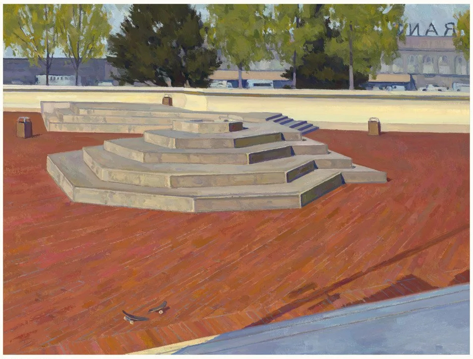 It’s the small details, though, that truly elevate Epicenter. The photo book includes fun, fold-out spreads. The essay book includes architectural blueprints of Embarcadero Plaza. The set comes with a gigantic poster featuring scores of tiny snapshots of Rosenberg’s skate video footage from the era. There’s even an art print of some of Embarcadero’s long lost ledges, painted by Eric Merrell. The love and reverence Rosenberg holds for Embarcadero is reflected in every aspect of the set.