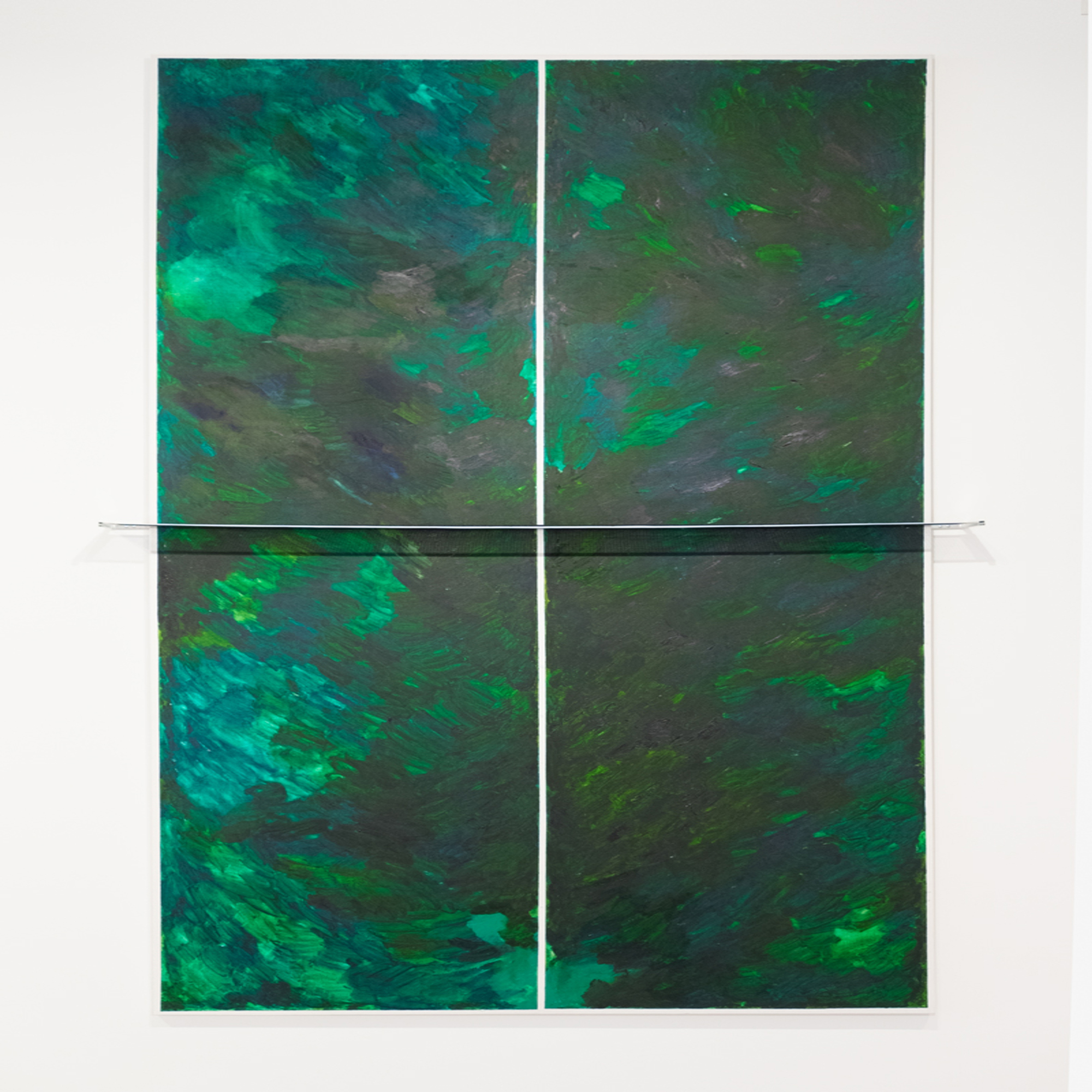 I once picked up a set of tarot-like cards at the flea market that looked a lot like Sally Scopa’s paintings and drawings: enigmatic, ethereal, speckled with airbrushed gradients. Scopa describes the dots covering her paintings as “tiny, condensed beads of moisture” that submerge or dissolve lines of sight. Recently emerged from our own atmospheric river, this blurred view of the world is a familiar one. Visit this show for a gentle reentry into the regular flow of work and life.