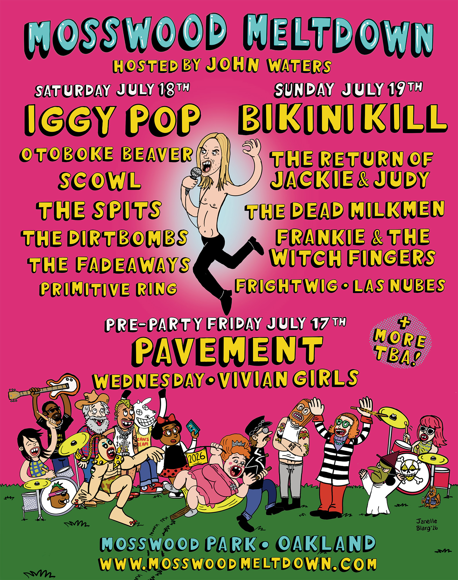 The lineup for this year’s Mosswood Meltdown festival in Oakland is here. Iggy Pop and Bikini Kill are headliners, along with a stacked schedule of openers that includes Otoboke Beaver, the Dead Milkmen, Corin Tucker and Carrie Brownstein of Sleater-Kinney with Fred Armisen, Scowl, Frightwig, the Dirtbombs and more.