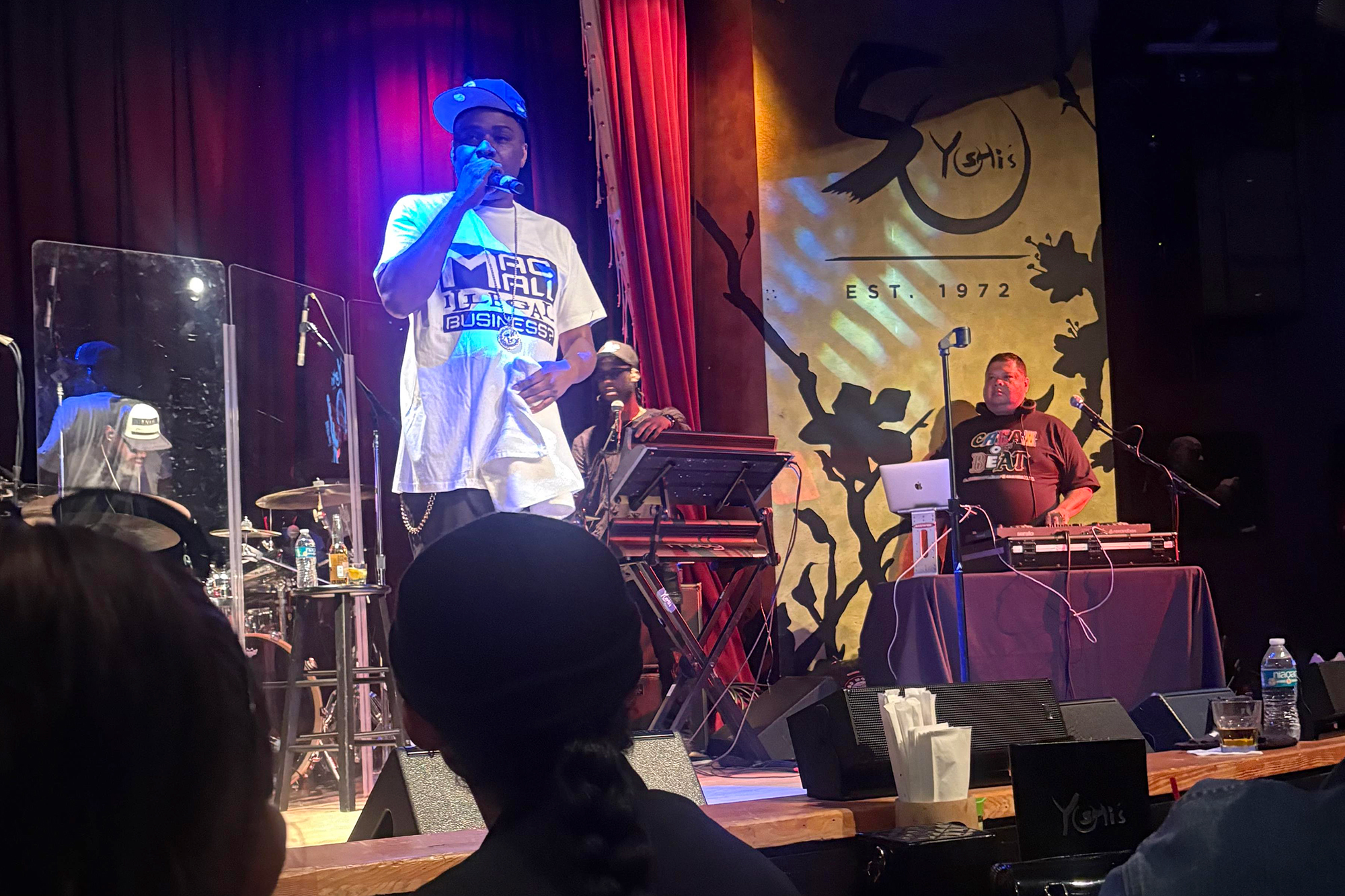 Mac Mall performs with a live band and DJ at Yoshi’s jazz club in Oakland on Aug. 10, 2025. (Courtesy Mac Mall)