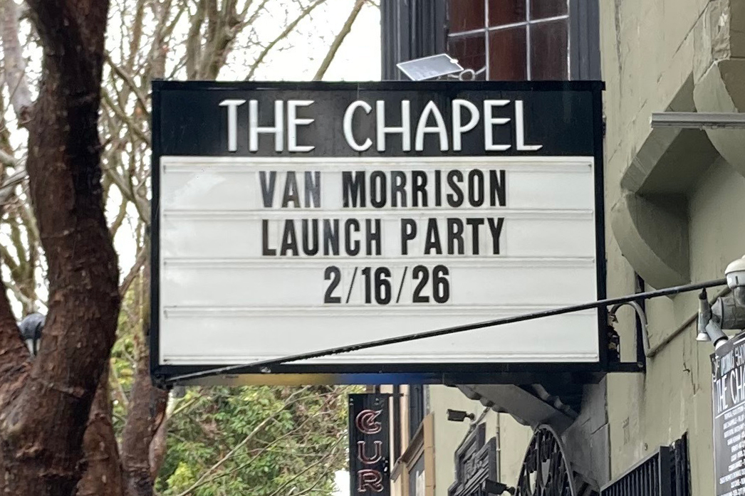 Van Morrison at The Chapel in San Francisco on Feb. 16, 2026. The singer performed songs from his 48th album, ‘Somebody Tried to Sell me a Bridge,’ for an invite-only crowd. (Gabe Meline/KQED)