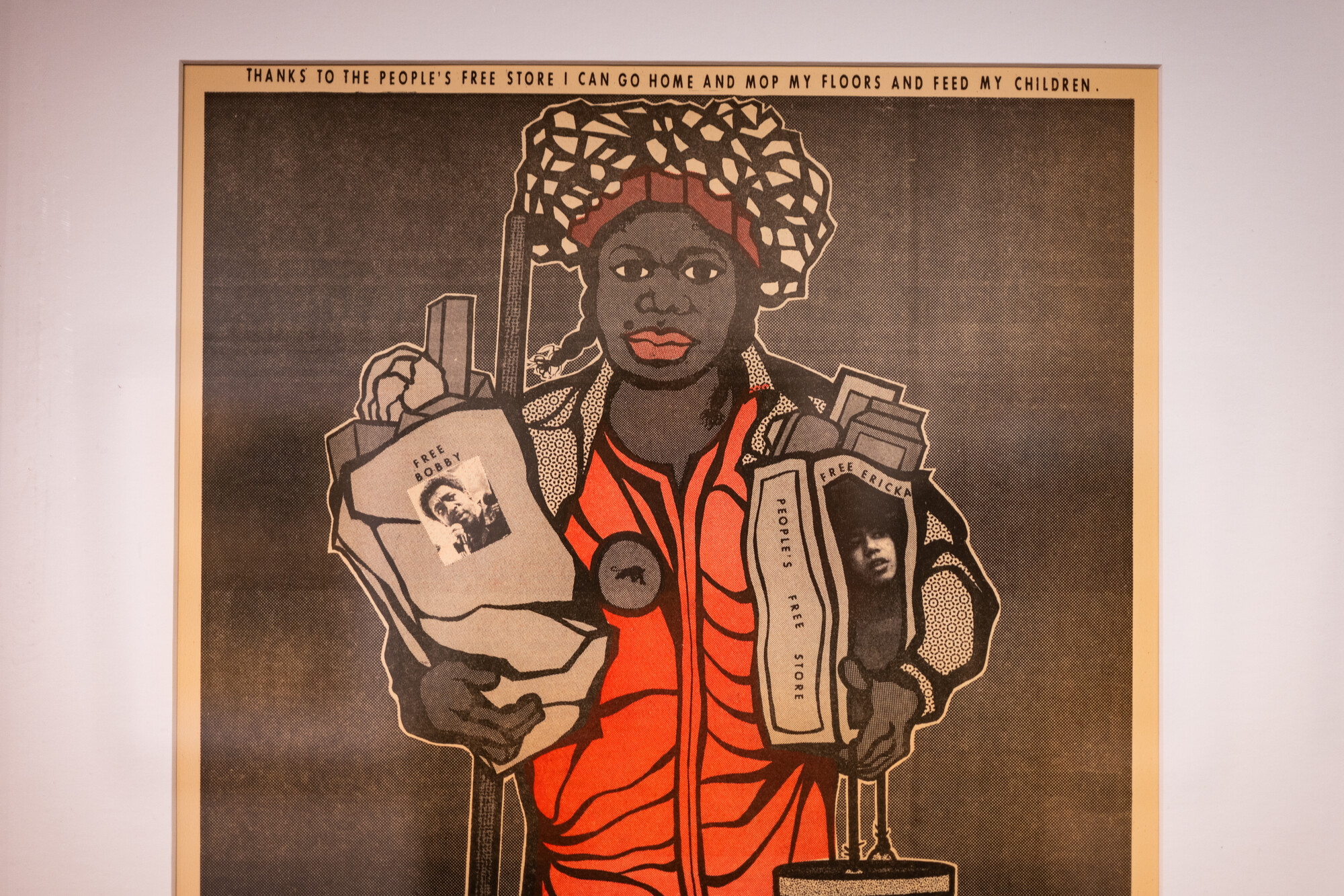 ‘BPP People‘s Free store’ (1969) by Emory Douglas at the African American Art & Culture Complex in San Francisco on Feb. 18, 2026. (Beth LaBerge/KQED)
