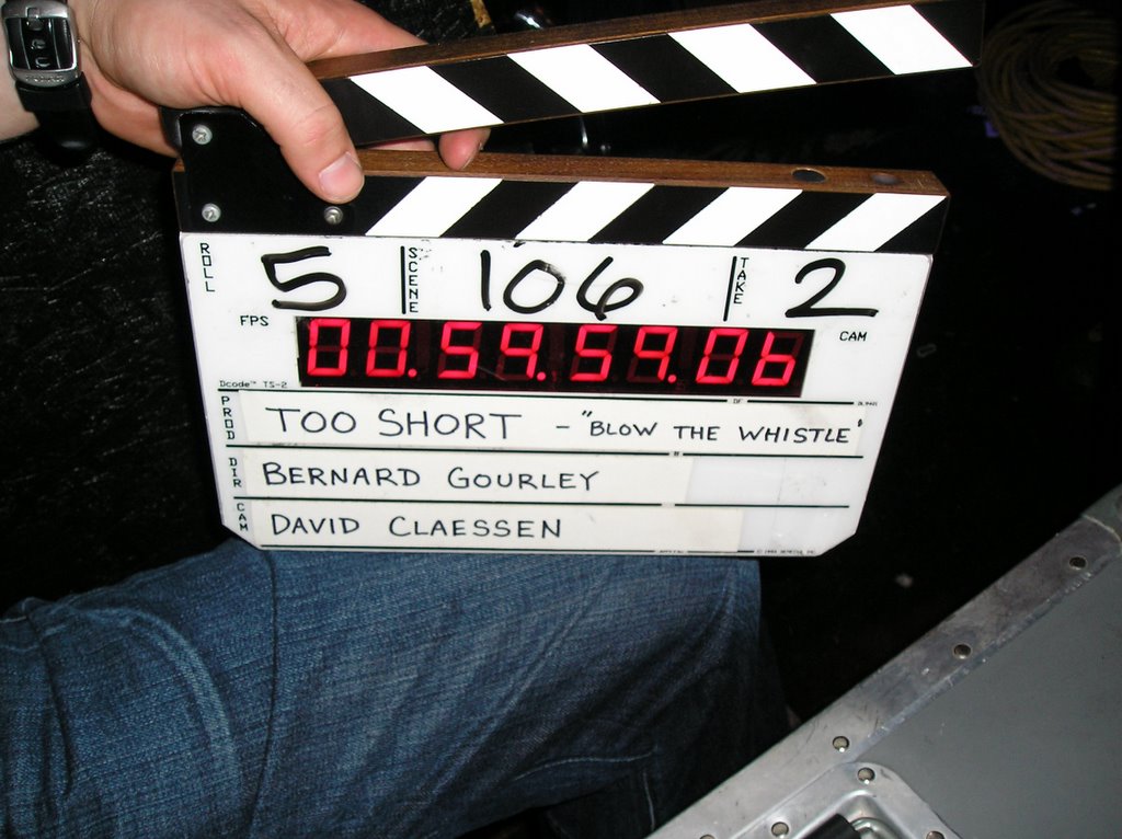 A clapperboard at the video shoot for Too Short’s ‘Blow the Whistle’ at Mingles nightclub in Oakland in 2006. (Tamara Palmer)