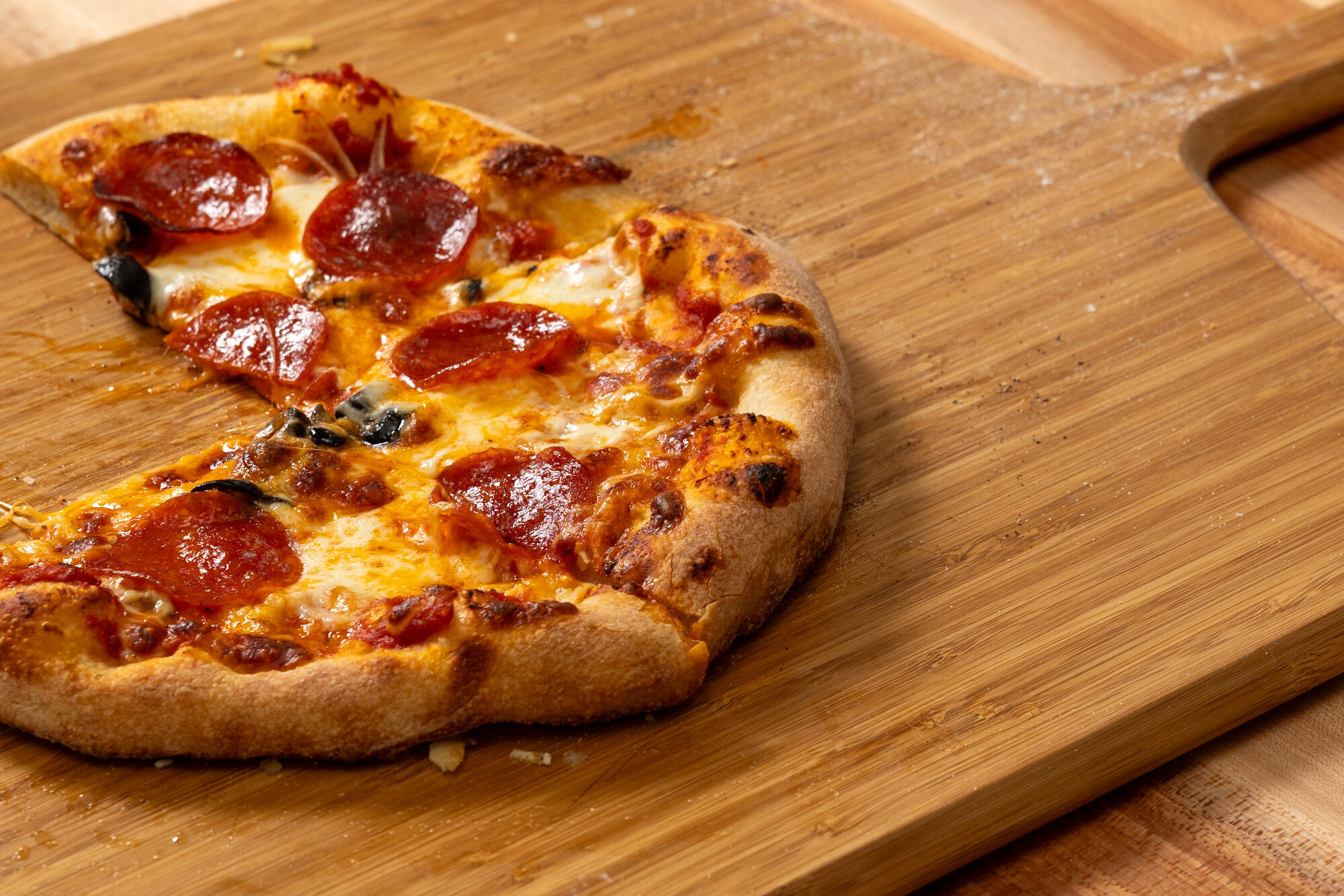 A freshly baked pizza: the end product of the Bayview Makers Kitchen’s March 2026 baking workshop. (Gustavo Hernandez/KQED)