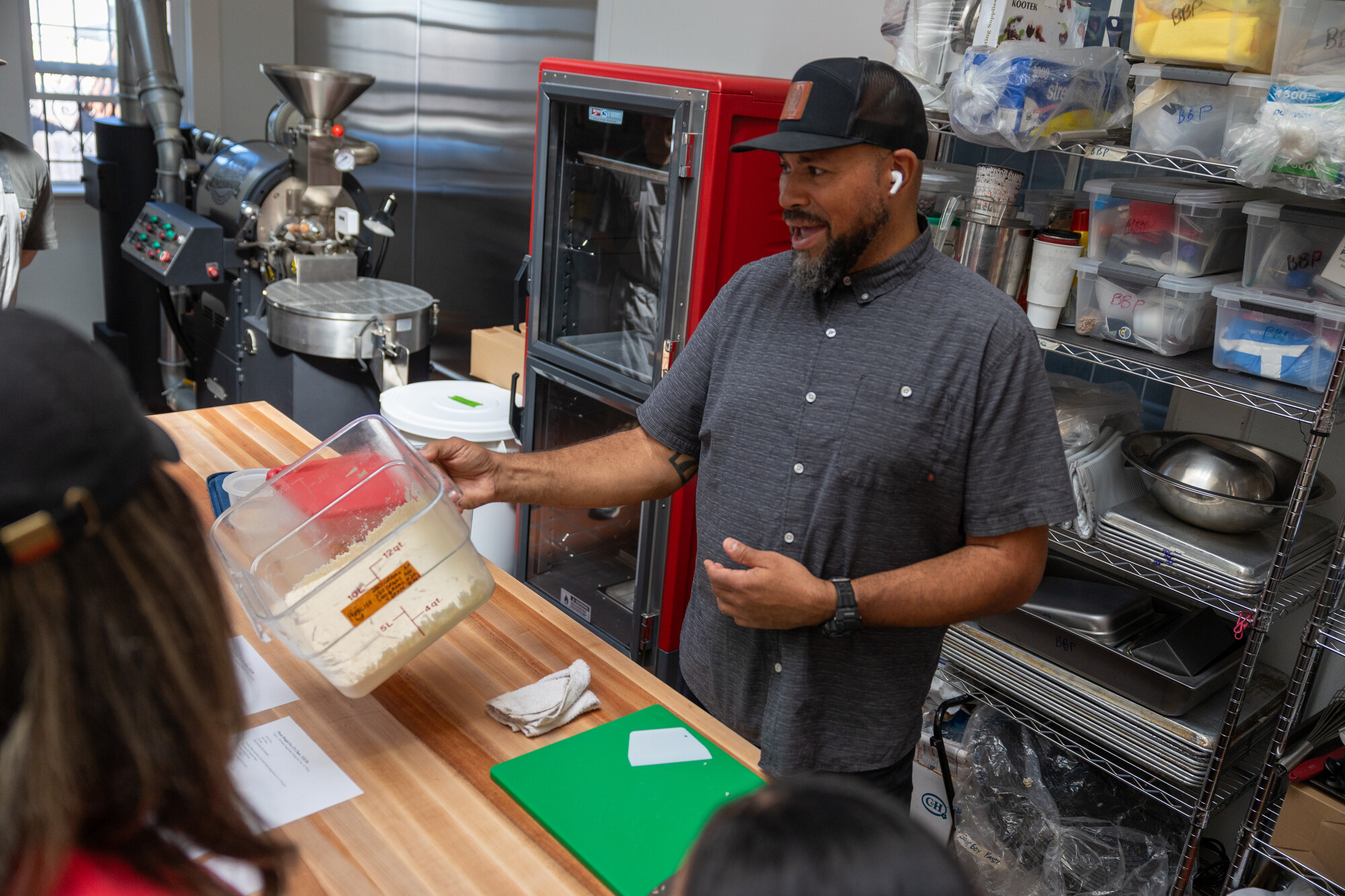 Anderson explains the dough-making process during his hands-on baking workshop. (Gustavo Hernandez/KQED)