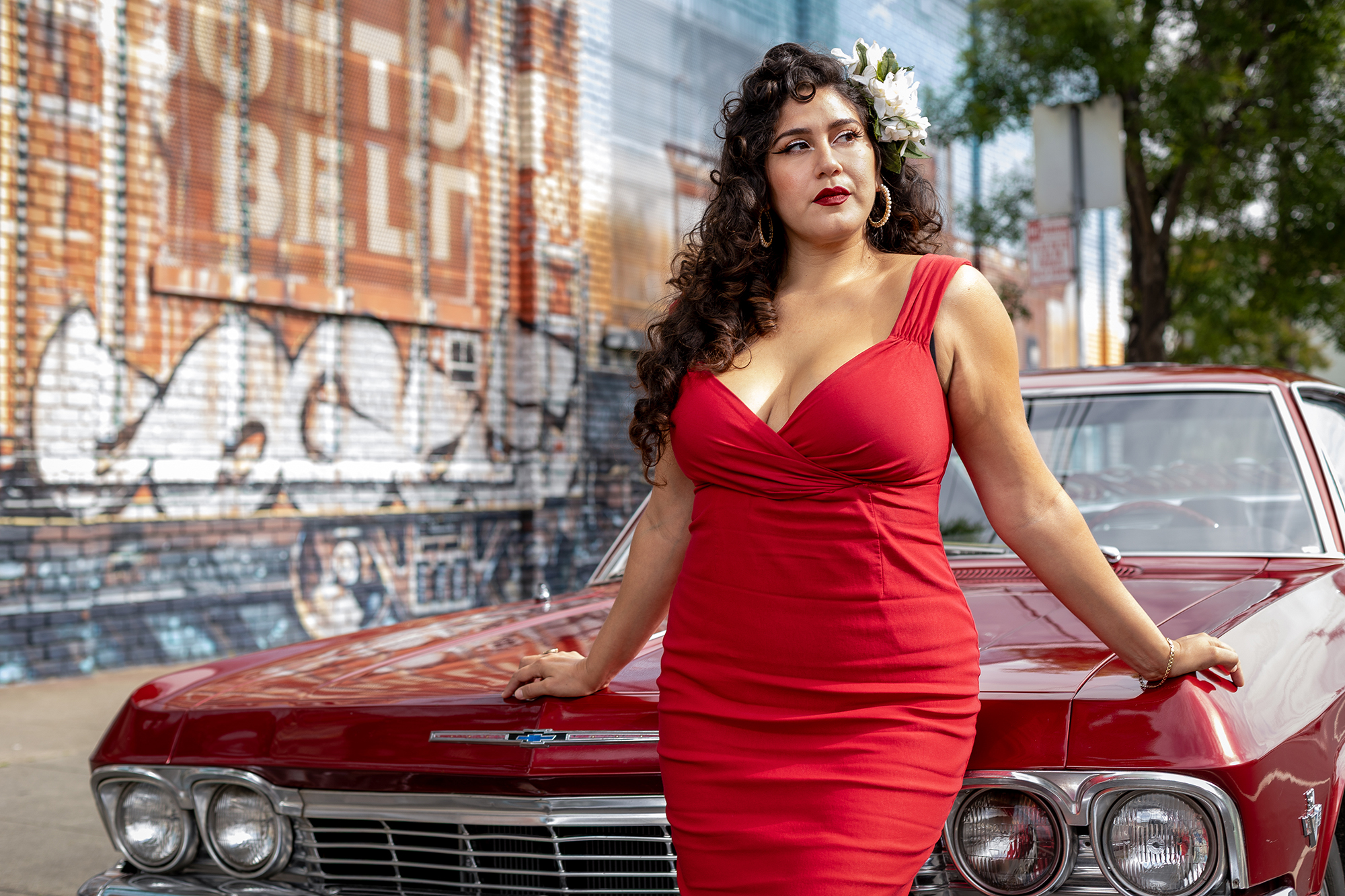 I’ve always looked like this. I’ve also acted like this, I’ve always sung like this. I’ve always been this person. Growing up seeing this Frisco-chola aesthetic and knowing that that’s where I feel comfortable, and that’s where I feel safe, and that is where I felt most like myself. But, also having the self-confidence to try new things and to lean into more adventurous styles and by learning how to sew and design at a young age.