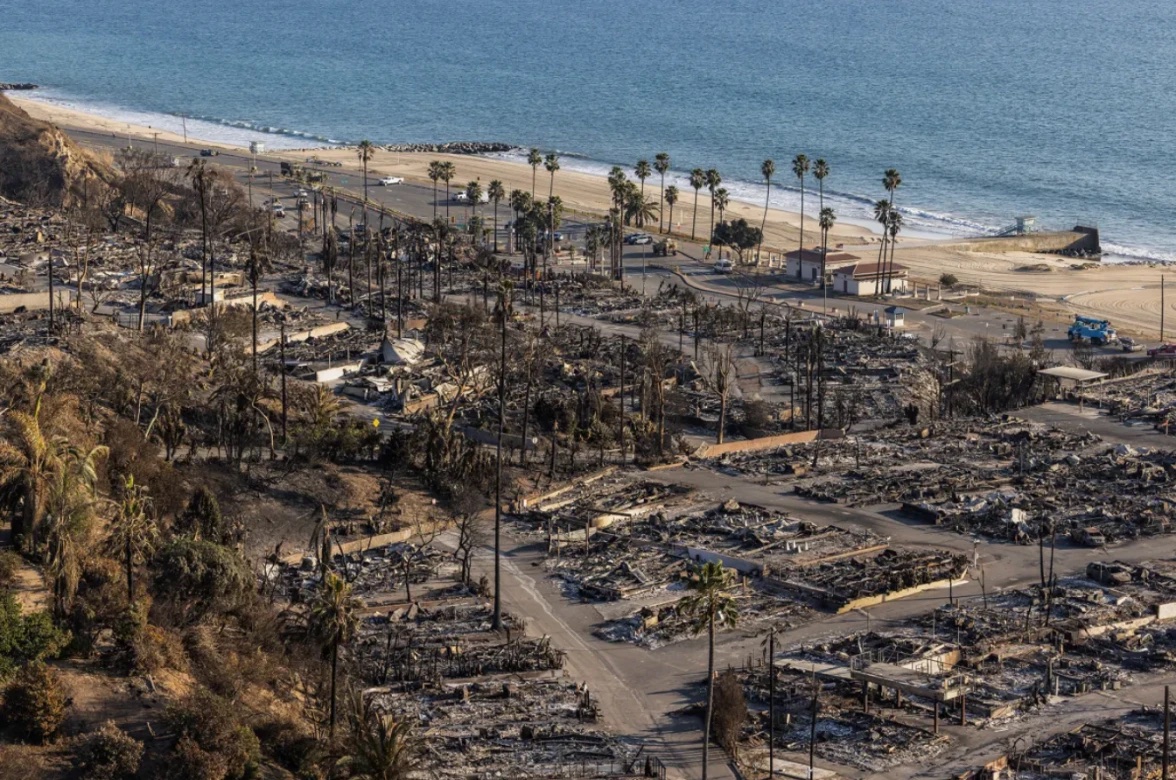 An aerial view of the Pacific Palisades Bowl Mobile Home Park in Los Angeles on Jan. 18, 2025. The park was completely burned down by the Palisades fire. (Ted Soqui/SIPA USA via Reuters)