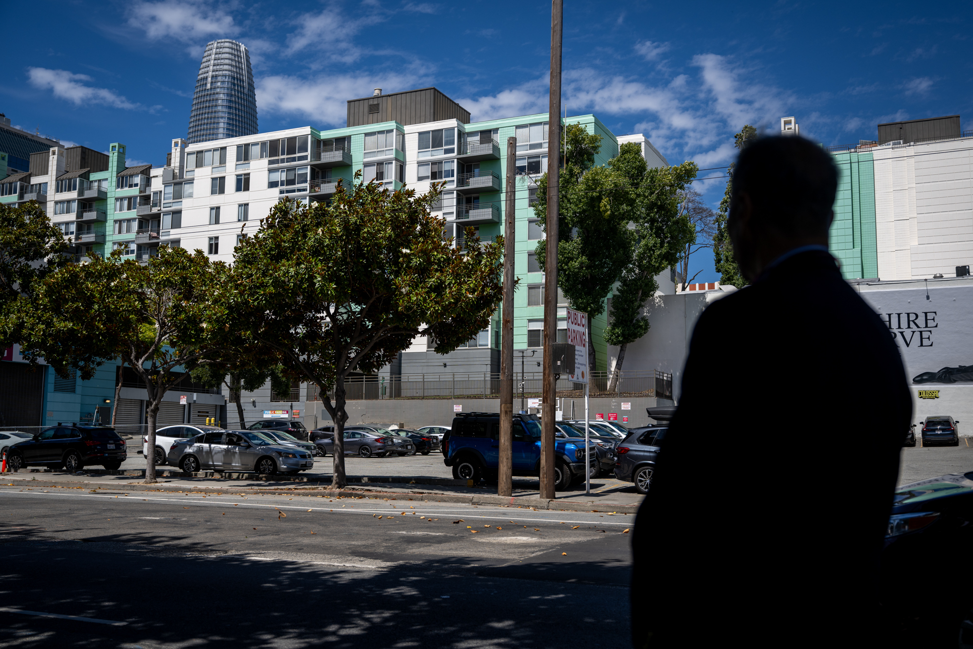 Downtown office workers, wearing backpacks and headphones, wordlessly passed one another on their way to nearby train stations. Muni buses groaned and sighed as they pulled up to a bus stop near an unremarkable half-acre concrete parking lot.