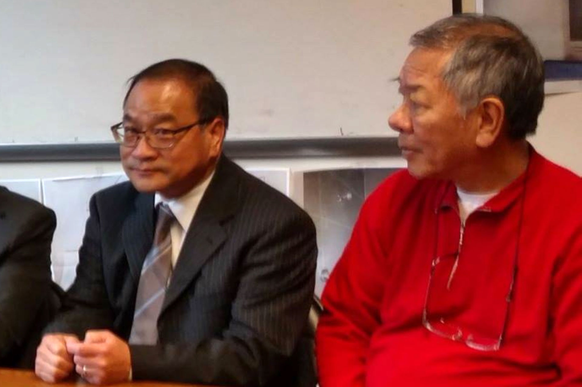 Walter Wong (right) and former Department of Building Inspection Director Tom Hui at a fundraiser in Chinatown in February 2017. (Anonymous courtesy photo)