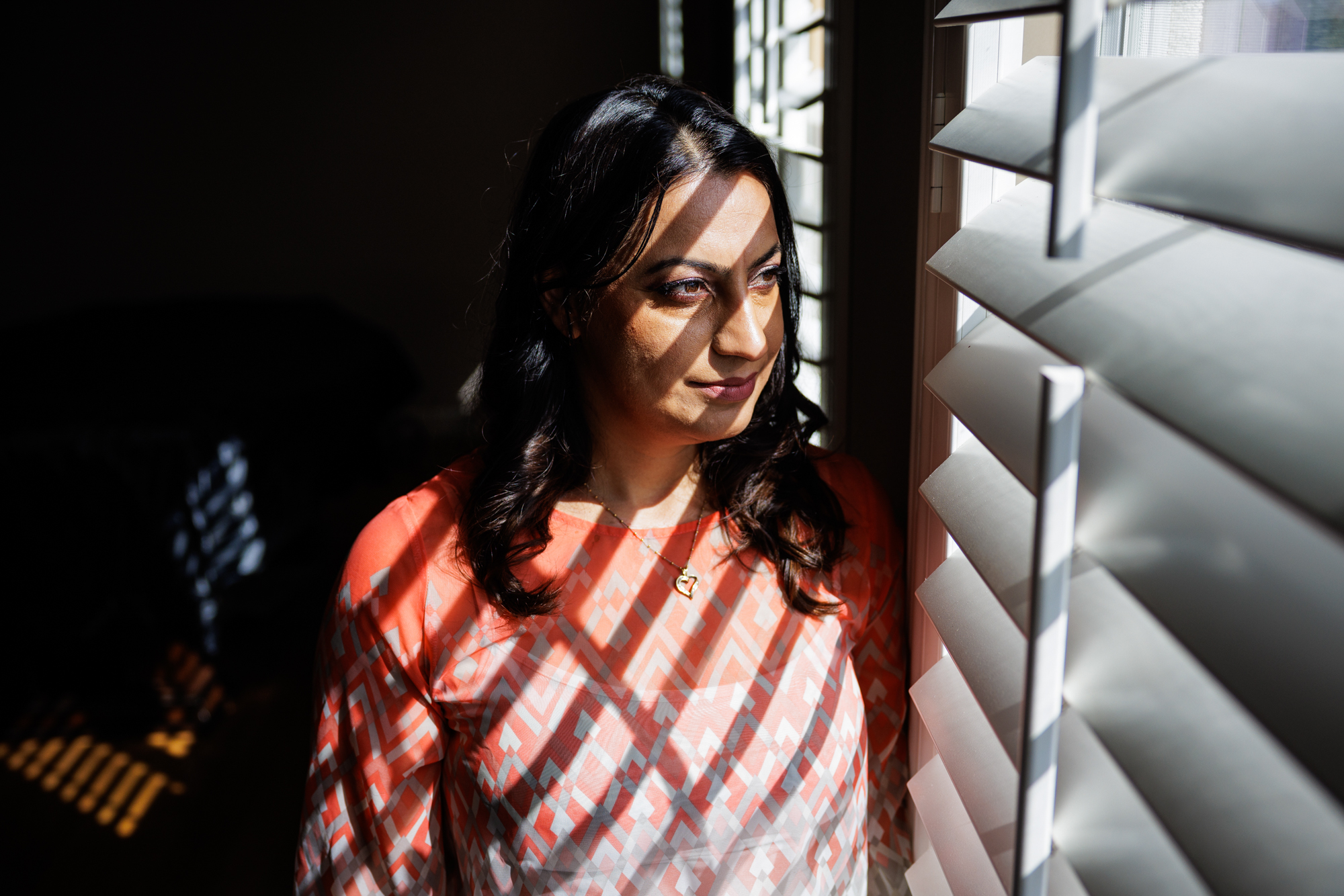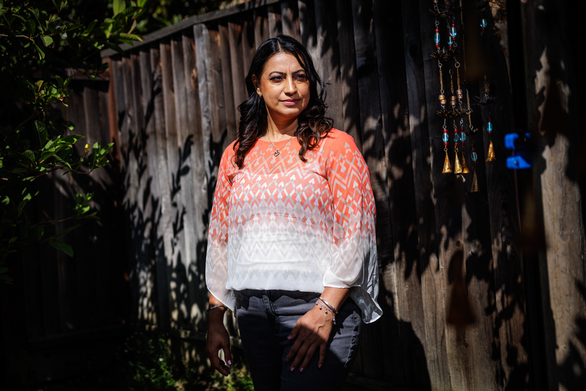Jagbir Kang at her home in Fremont on July 25, 2025. (Martin do Nascimento/KQED)