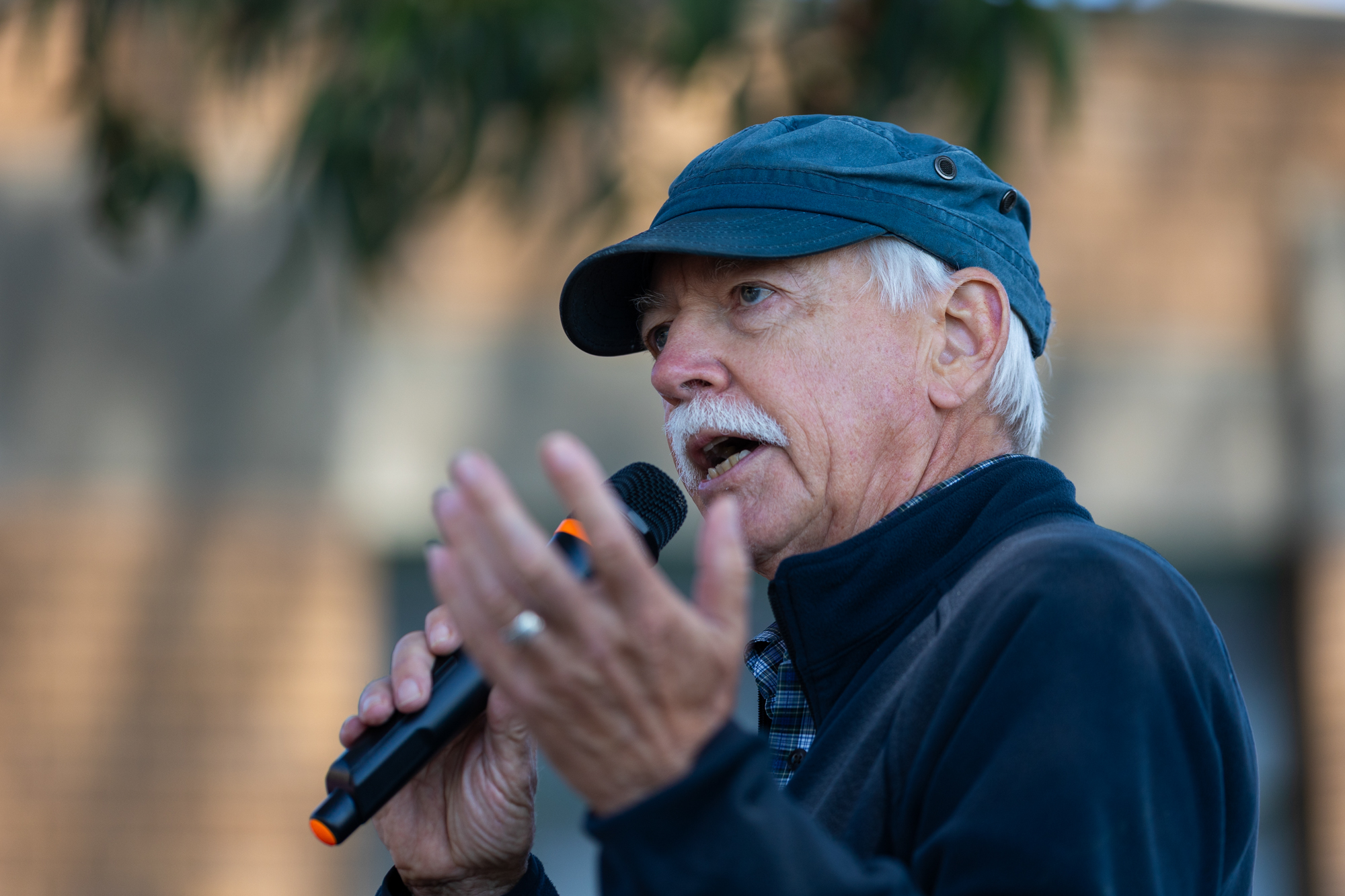 Jon Jarvis, who served as the 18th director of the National Park Service from 2009 to 2016, speaks during the agency’s 109th birthday celebration and Day of Action at Rosie the Riveter/WWII Home Front National Historical Park in Richmond, California, on Aug. 25, 2025. (Gustavo Hernandez/KQED)