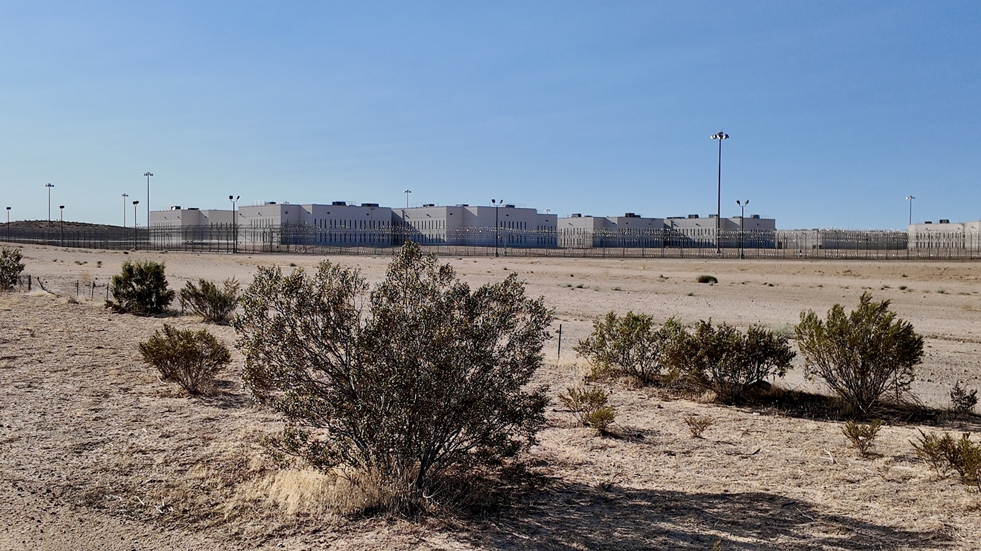 The CoreCivic Inc. California City Immigration Processing Center in California City, California, in June 2025. (Saul Gonzalez/KQED)