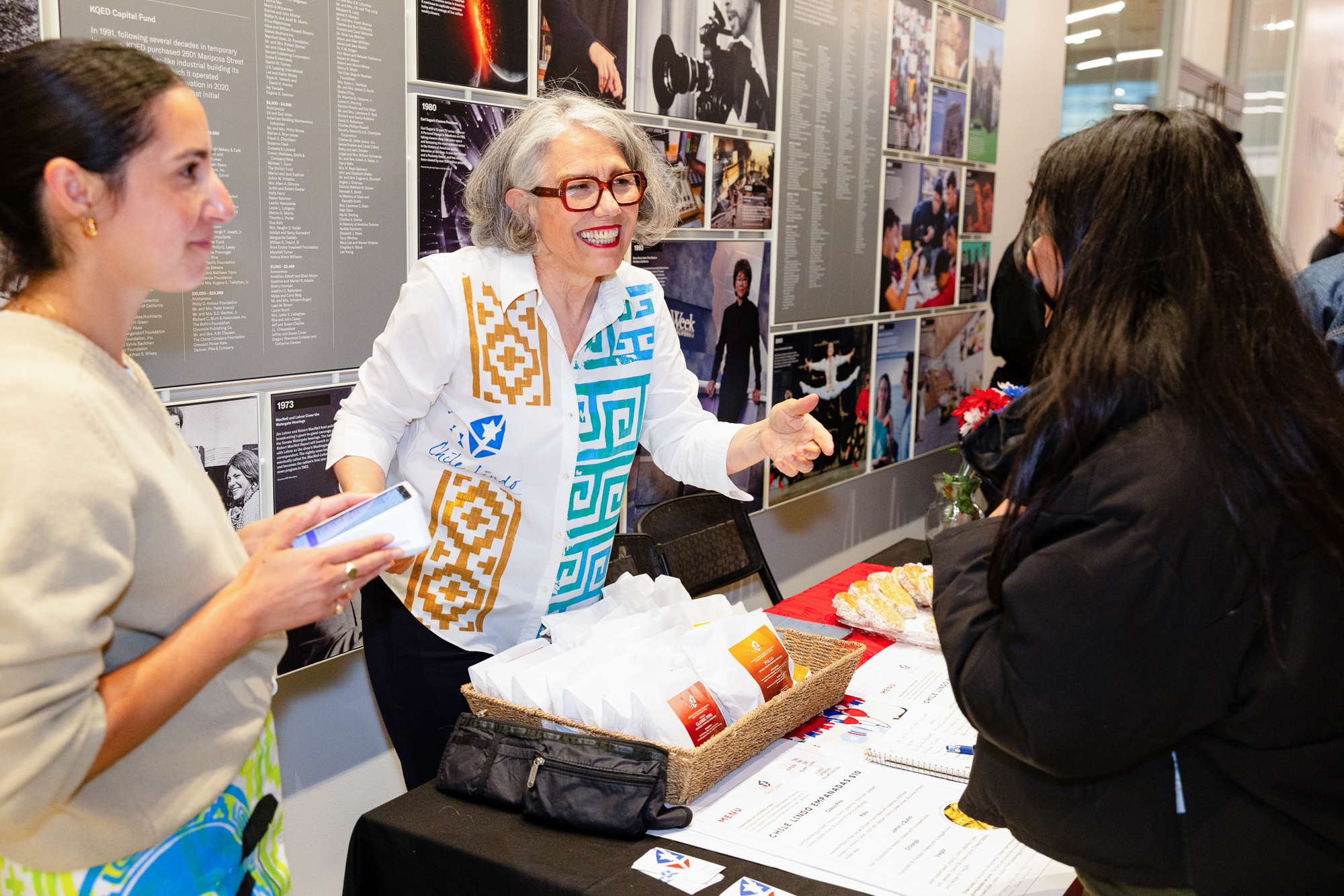 Paula Tejeda, center, owns Chile Lindo, a Mission District restaurant known for its Chilean-style empanadas. (Estefany Gonzalez for KQED)
