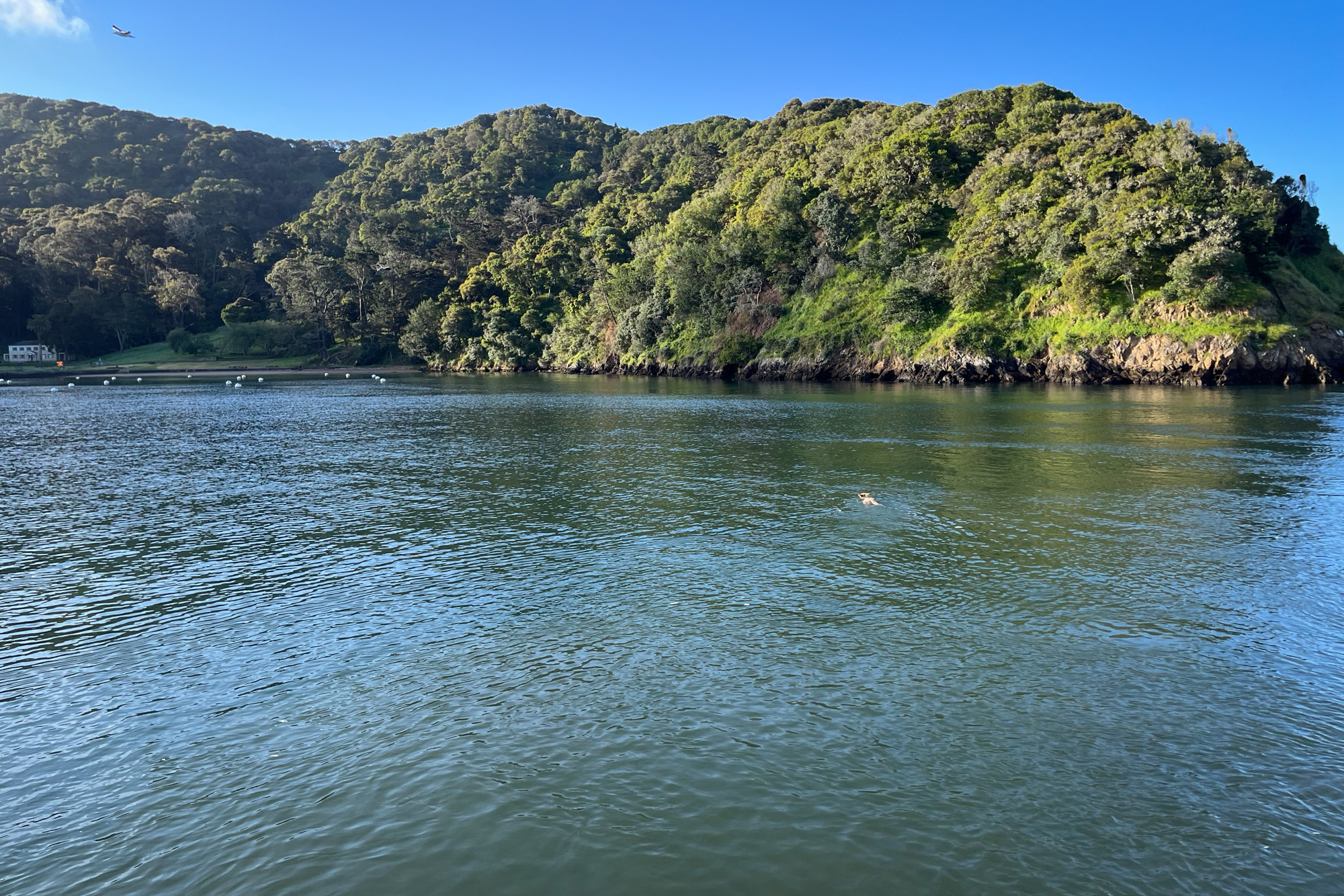 After making it about a quarter of a mile away, the coyote turned around and swam back into Angel Island’s Ayala Cove, before climbing the seawall and returning to shore.