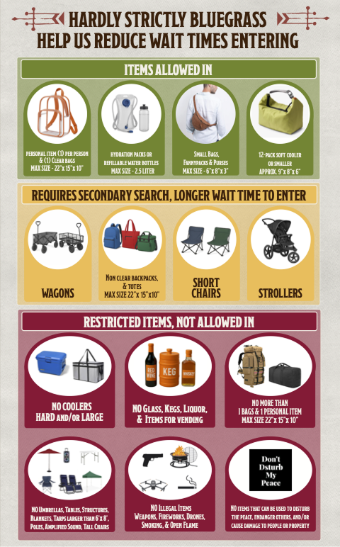 If you haven’t attended Hardly Strictly in a while, many security measures will be new, including fences and entry through the four main gates. The measures were implemented in 2019 following a wave of mass shootings at large events across the U.S.