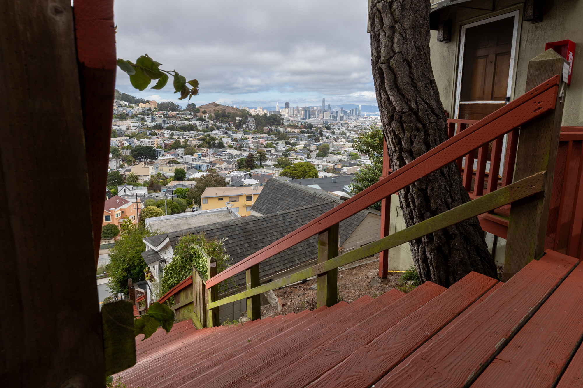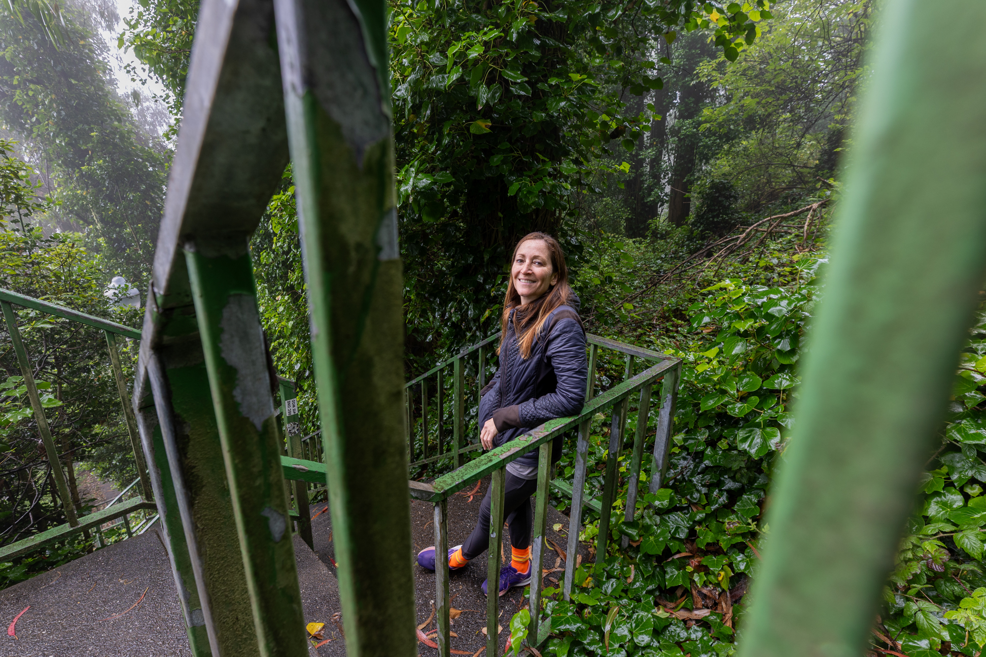 Gabriela Glueck in scene: So I’m here at the Iron Alley stairways in the Twin Peaks neighborhood, and this one looks pretty steep, not gonna lie, goes straight down.