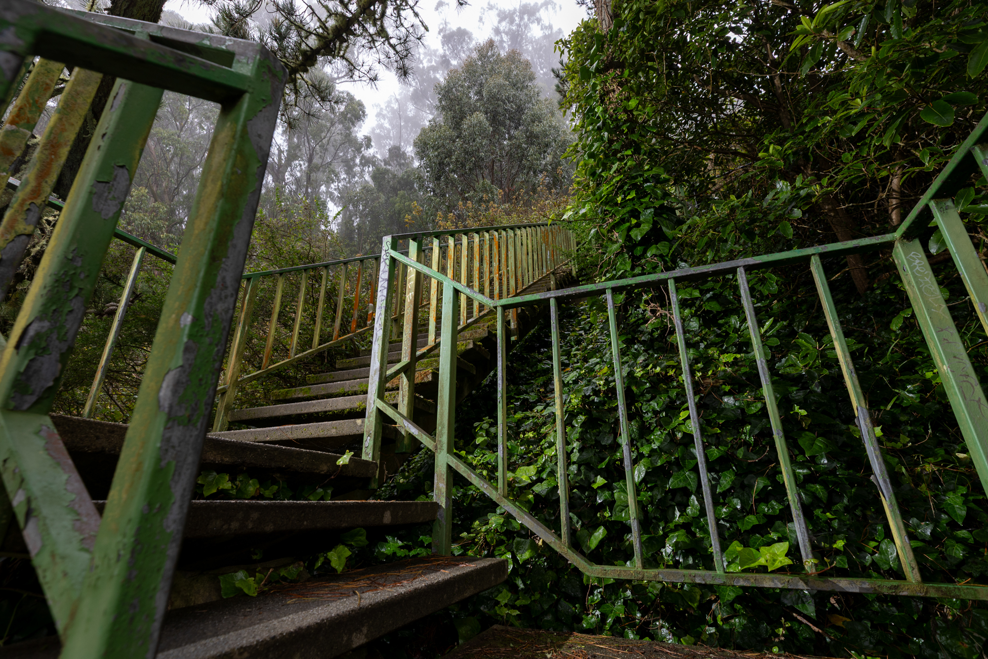 Alexandra Kenin: It’s a foggy day. The eucalyptus trees are swaying. It’s a very atmospheric day. And if you take a look, it’s kind of funny. There’s moss growing on the stairs. I’m pretty sure it’s foggy here a lot of the time.
