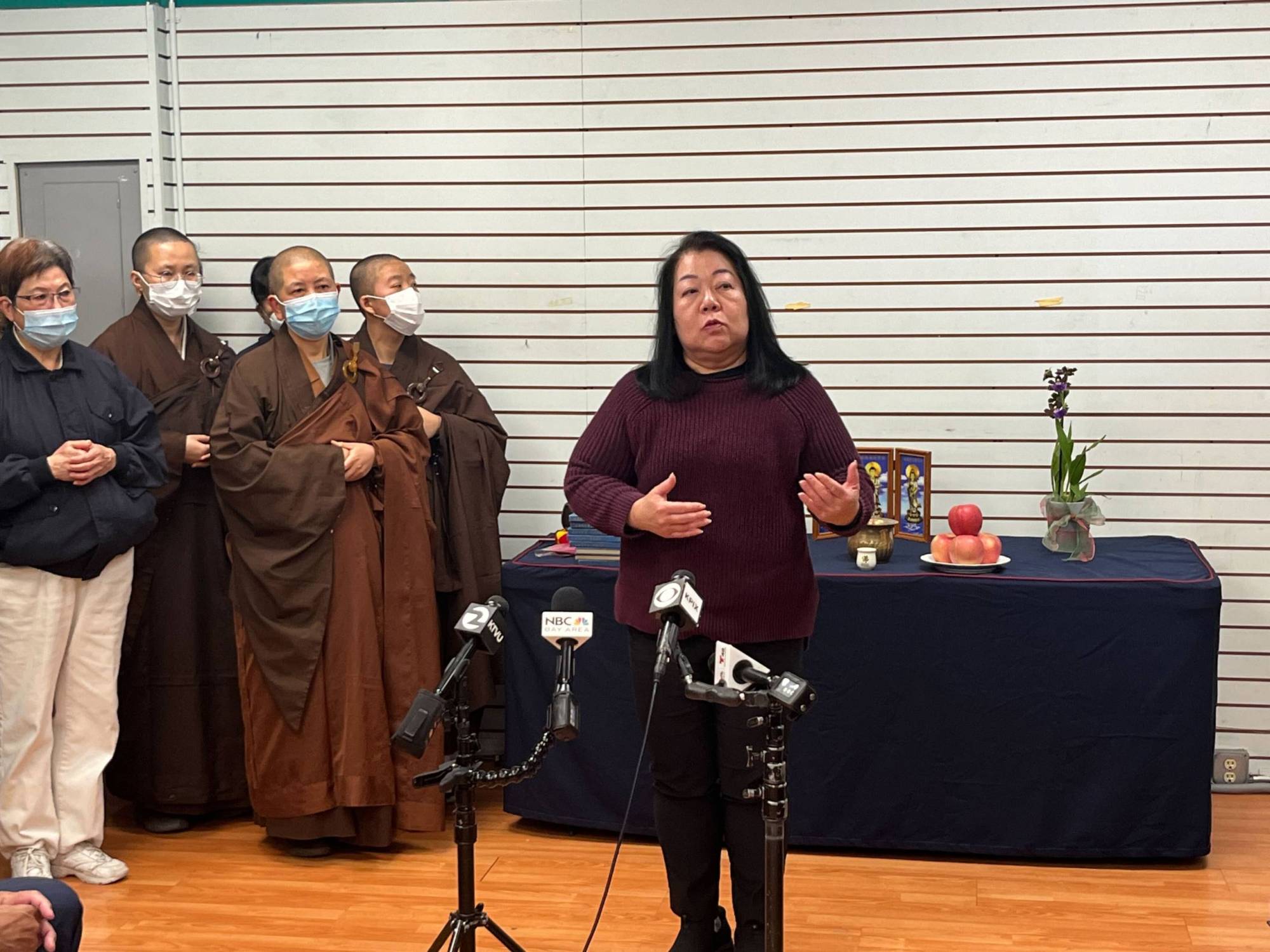 Alameda County Supervisor Lena Tam spoke during a vigil for Oakland Police Officer Tuan Le on Jan. 5, 2024. Tam requested the Election Center’s review of the registrar’s office. (Marnette Federis/KQED)