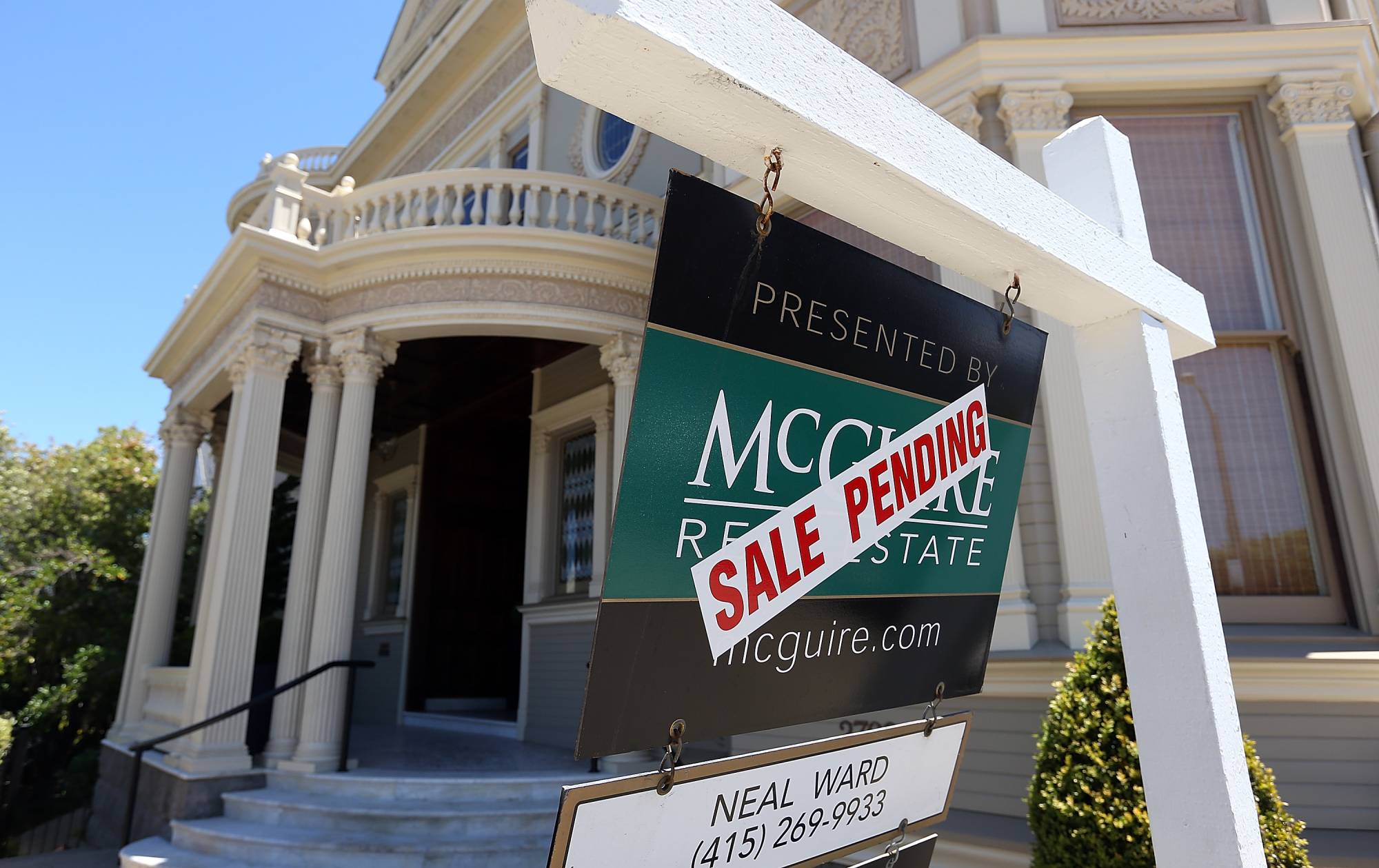 A ”sale pending” sign is posted in front of a home in San Francisco, California. (Justin Sullivan/Getty Images)
