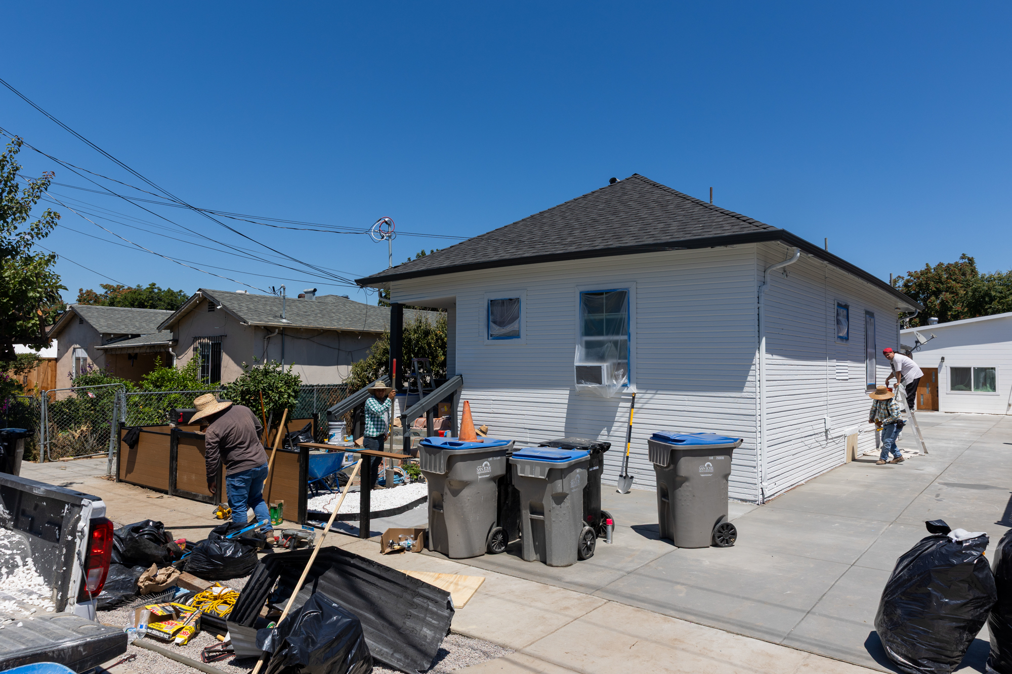 A construction crew works on a property in San José on Aug. 13, 2025. (Tâm Vũ/KQED)