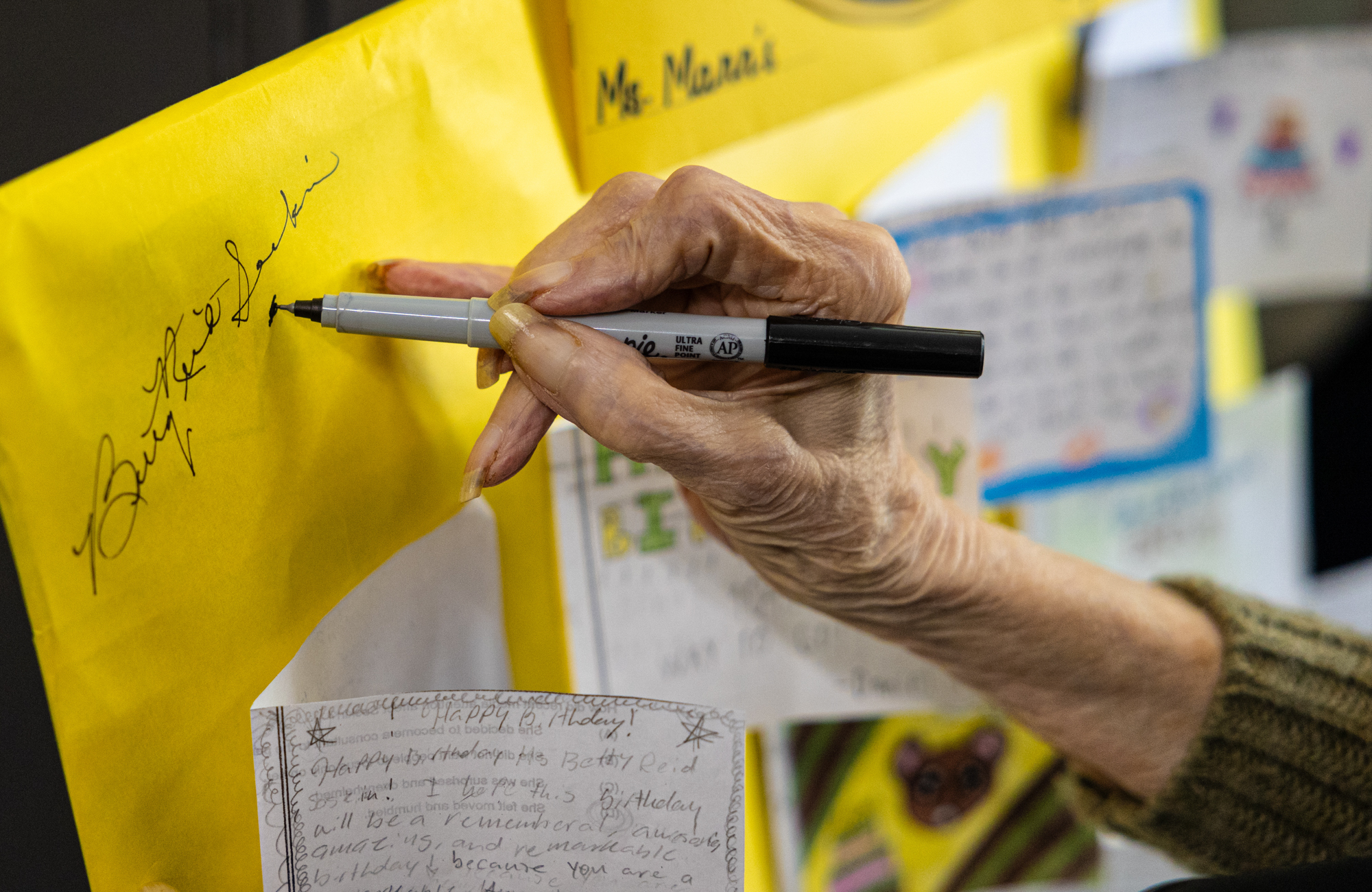 As is now an annual tradition, Reid Soskin and her family stopped by the school for her birthday, where students and staff celebrated her. As she made her rounds, she and the students — generations apart — seemed to be awestruck in each other’s presence.