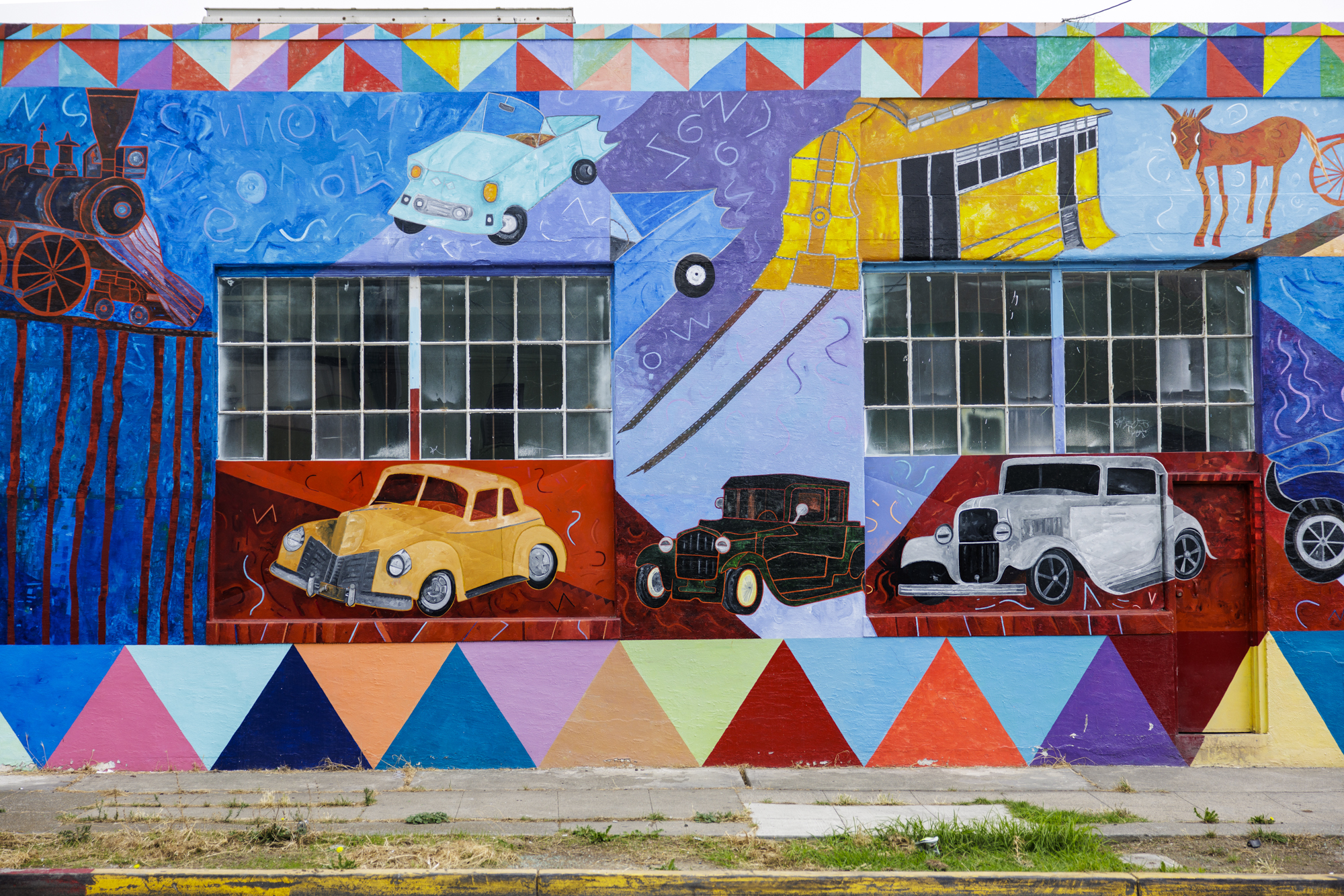 A mural on the facade of Transmatic Transmission in the Fruitvale neighborhood in Oakland on Oct. 22, 2025. (Martin do Nascimento/KQED)