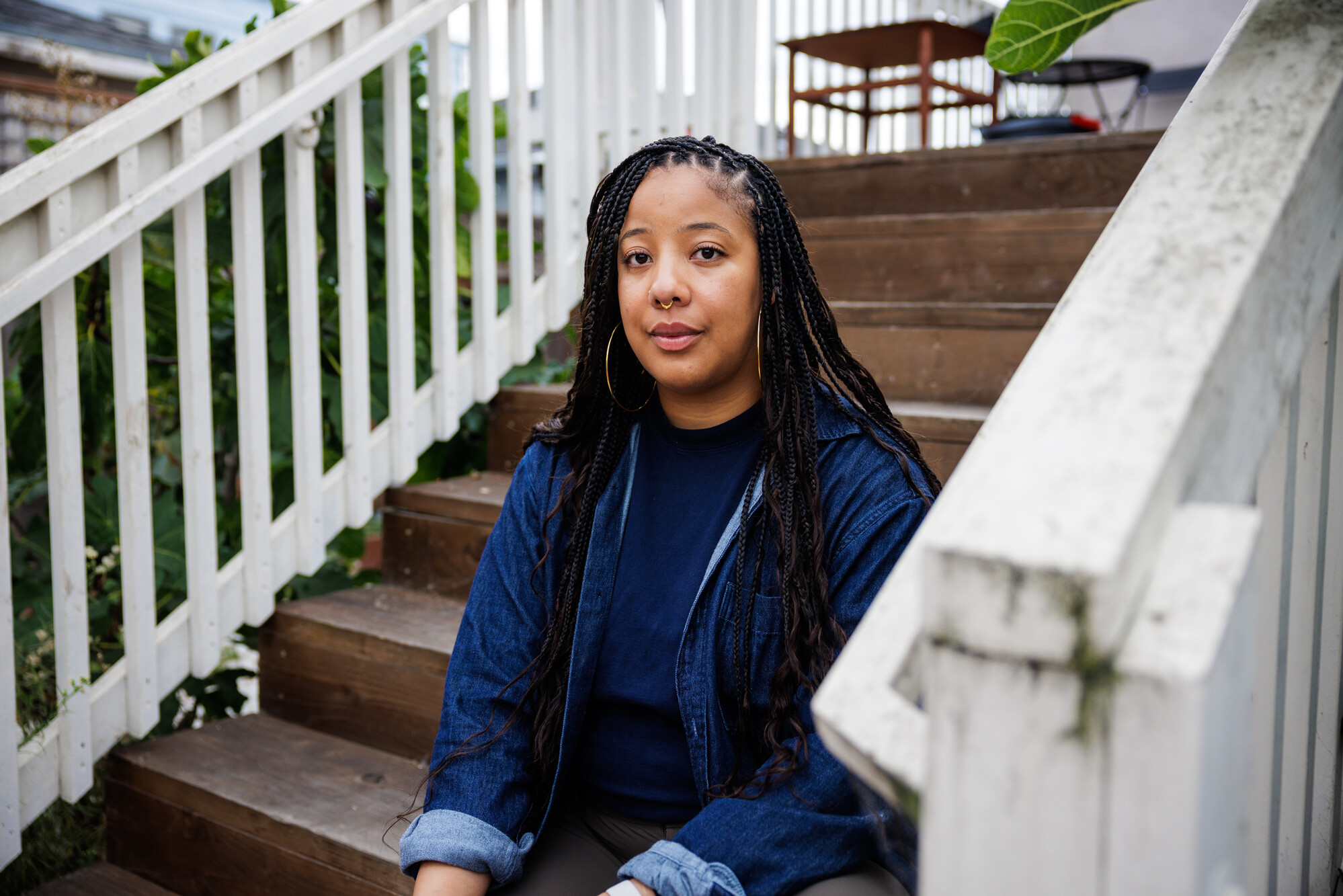 Maryann Doudna outside her home in Oakland on Sept. 24, 2025. (Martin do Nascimento/KQED)