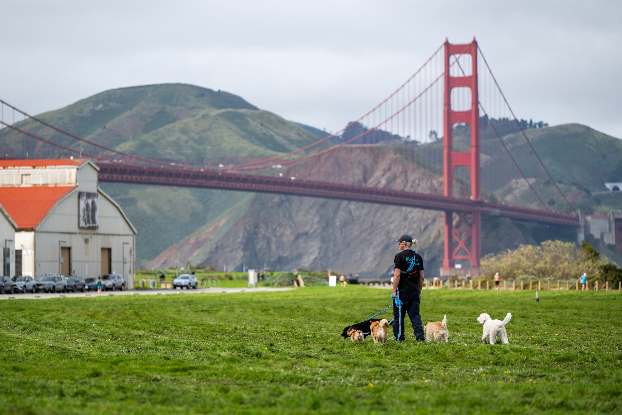 A person walks dogs through Crissy Field in the Presidio, a park and former military outpost, in San Francisco on Feb. 25, 2025. To celebrate National Public Lands Day, here’s how to donate your time restoring some of the Bay Area’s most beautiful spaces.