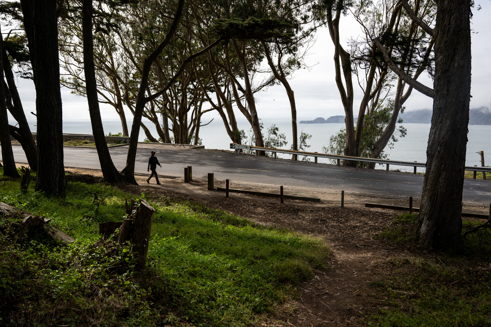 A trail passes by Immigrant Point Overlook in the Presidio of San Francisco on Sept. 4, 2025. (Beth LaBerge/KQED)
