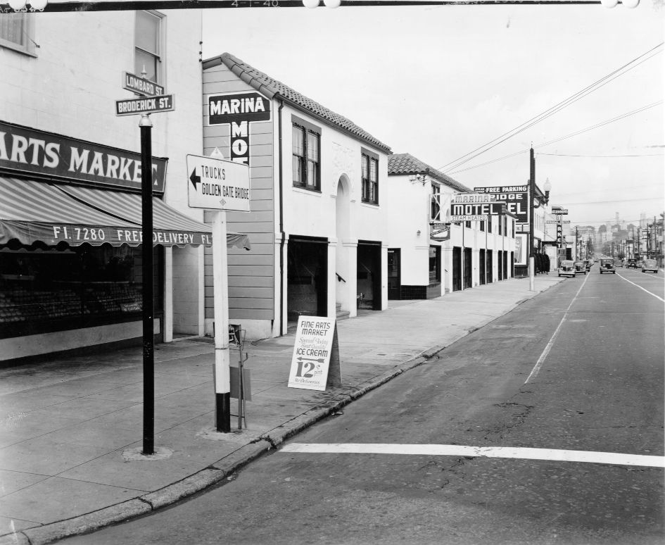 Christopher Beale: The south side of the street was bulldozed to make room for the new lanes of traffic. But the Marina Motel is on the north side of Lombard, closer to the Bay and the Palace of Fine Arts, so it wasn’t directly impacted until the road was finished, that is.