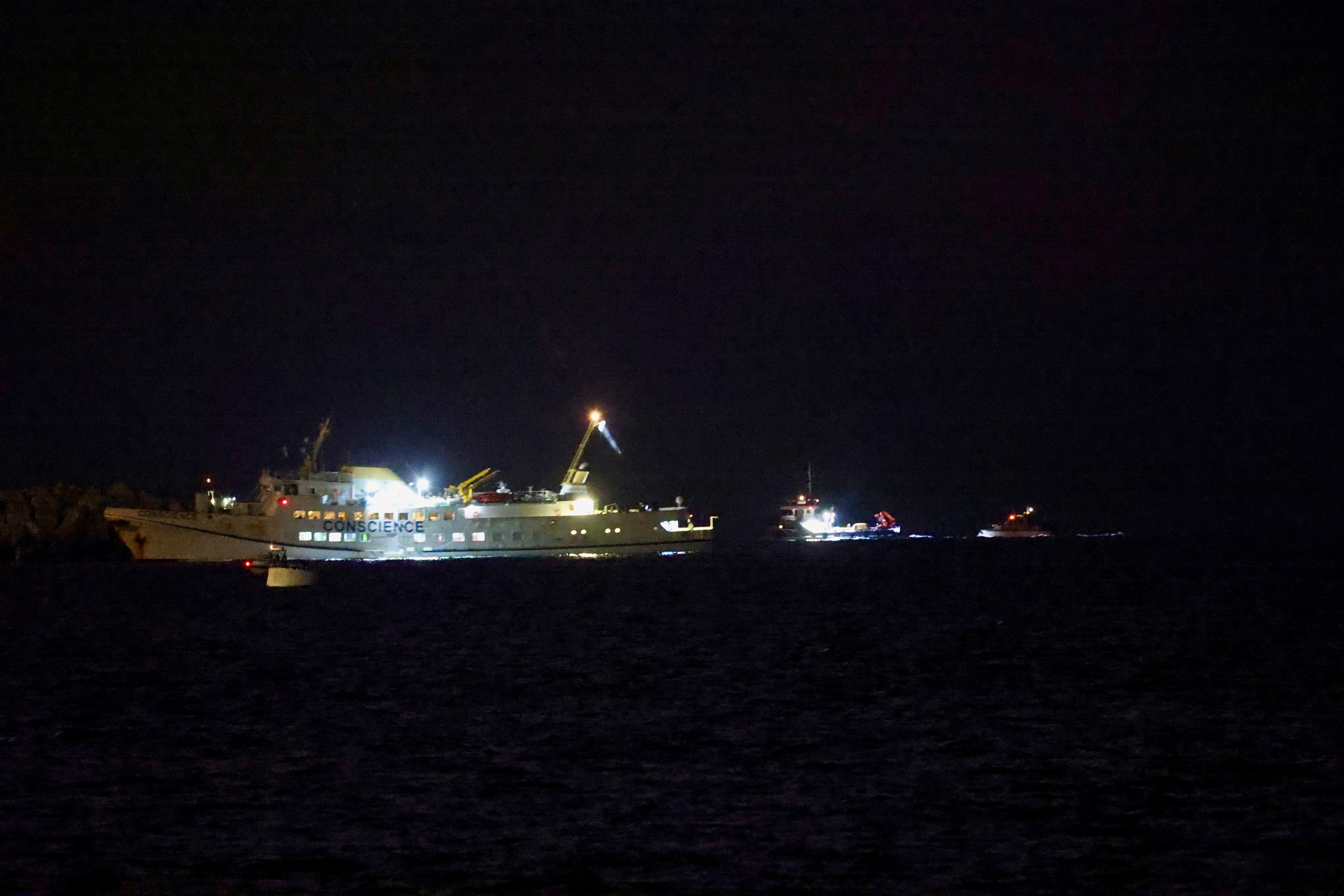 A vessel of the Gaza-bound flotilla is tugged toward the port of Ashdod in southern Israel on Oct. 8, 2025. The Israeli Navy intercepted an international aid flotilla on its way to Gaza in the Mediterranean Sea on Wednesday, the Israeli Foreign Ministry said in a statement. (Jamal Awad/Xinhua via Getty Images)