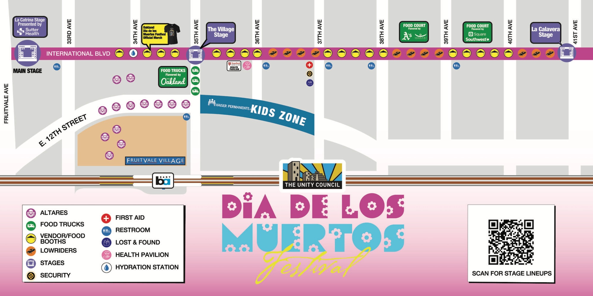 A map of Oakland’s Día de los Muertos Festival on International Blvd.