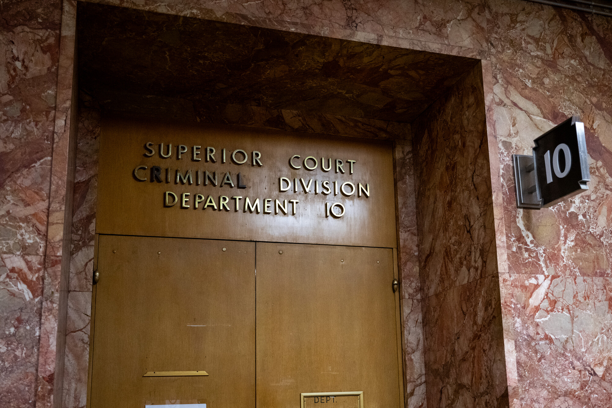 The door for Superior Court Criminal Division Department 10 at the Hall of Justice in San Francisco on Aug. 6, 2024. (Beth LaBerge/KQED)