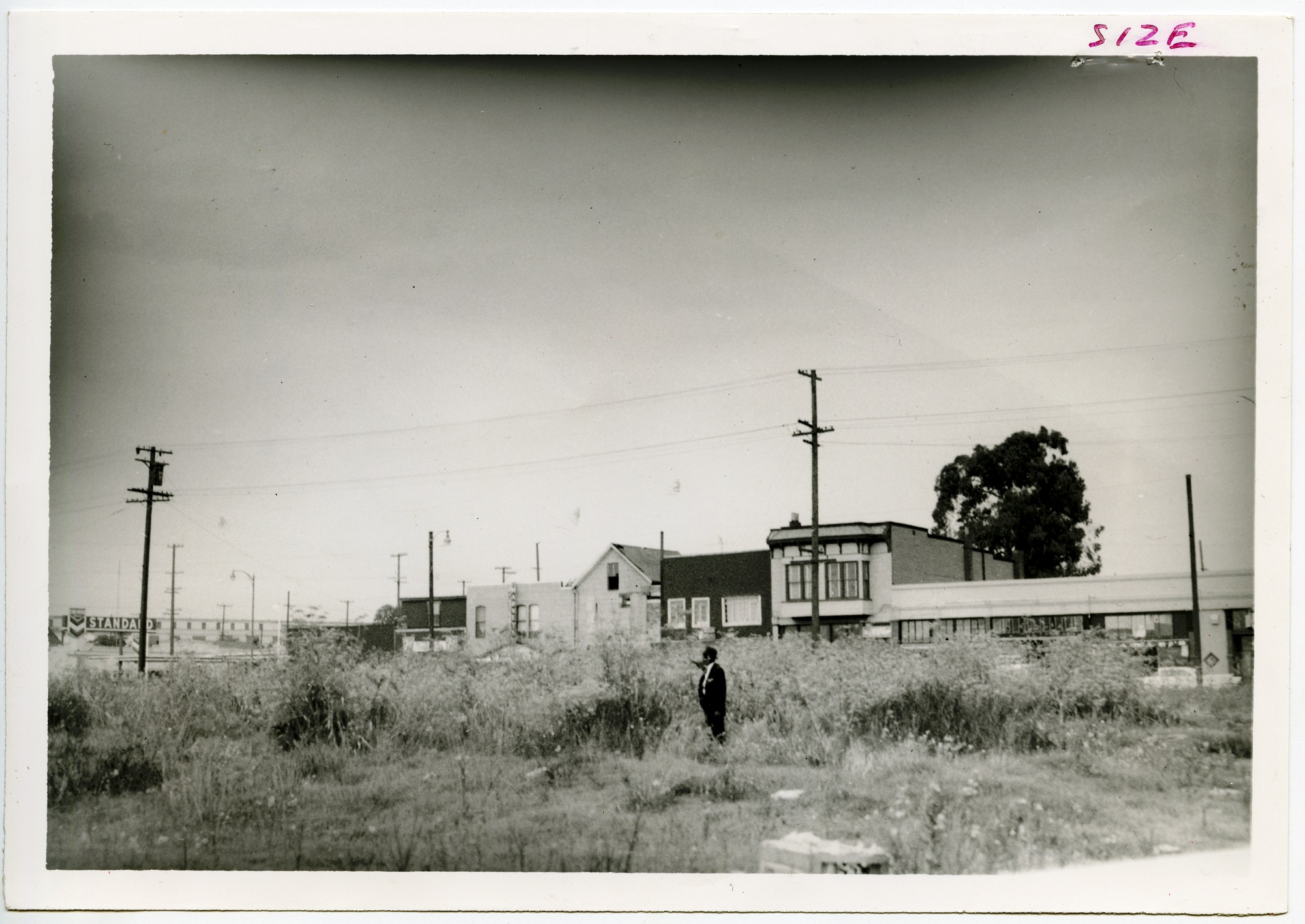 In an Oakland Post story from Sept. 25, 1963, the newspaper reports on the status of the new Oakland Main Post Office development: “Weeds are over nine feet high. This is an insult to the Negro community. In the background are businesses on Seventh St. This area was sold to the federal government for an alleged Post Office. Over 500 homes were destroyed, to create this blight.” (Courtesy of the African American Museum & Library at Oakland)