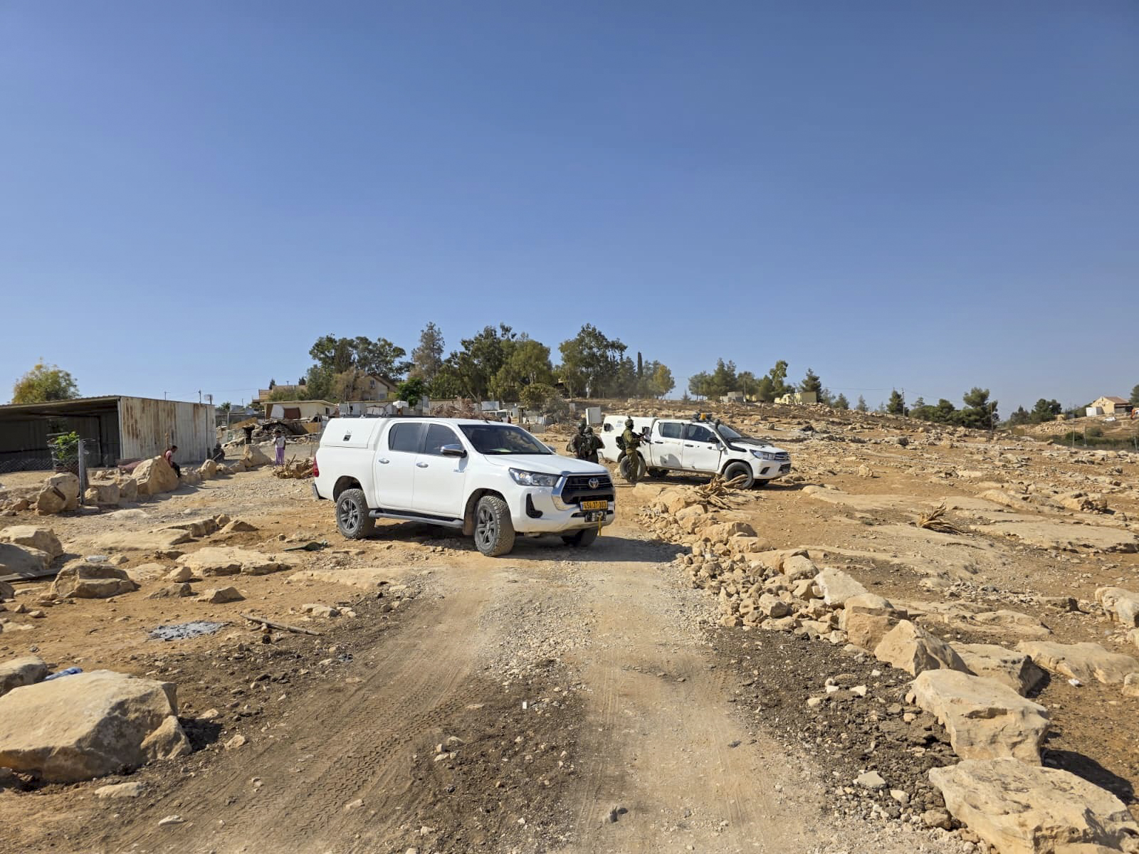 Israeli army personnel brought the alleged demolition orders along with Civil Administration employees on Tuesday, Oct. 28, in Umm al-Khair, a village in the West Bank. (Photos courtesy of Umm al-Khair residents)