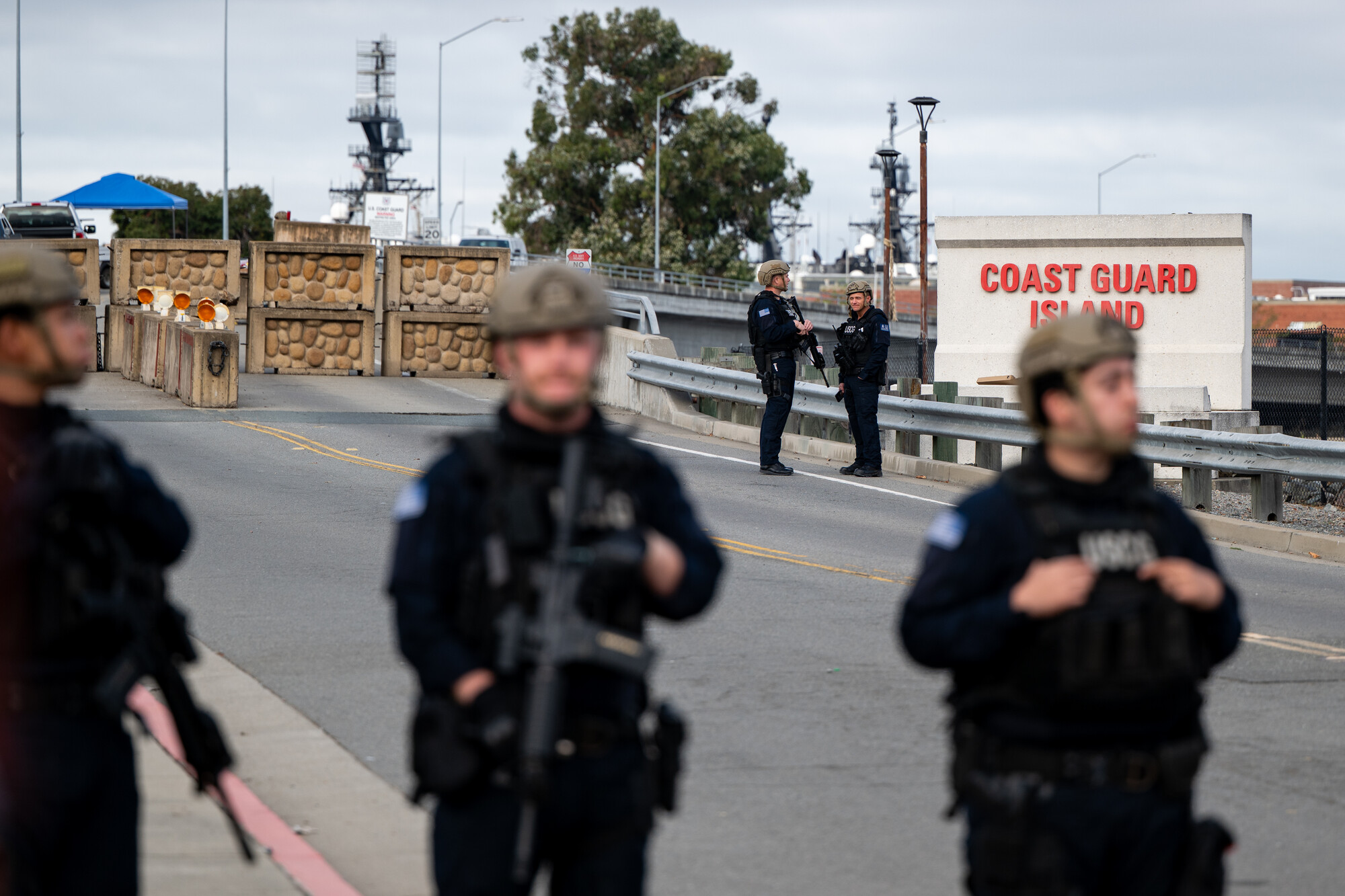 Hours later, when California Highway Patrol officers cleared the road, two protesters were arrested. The crowd mostly dispersed in the afternoon, but federal officers continued to mount a blockade of the bridge late into the night.
