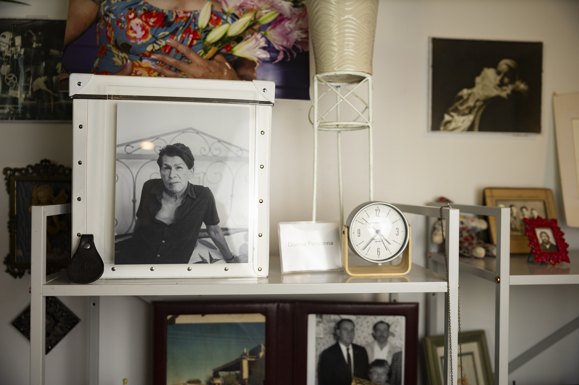 A photo of Donna Personna from 2014 is displayed at her home in San Francisco on Nov. 6, 2025. (Gina Castro/KQED)