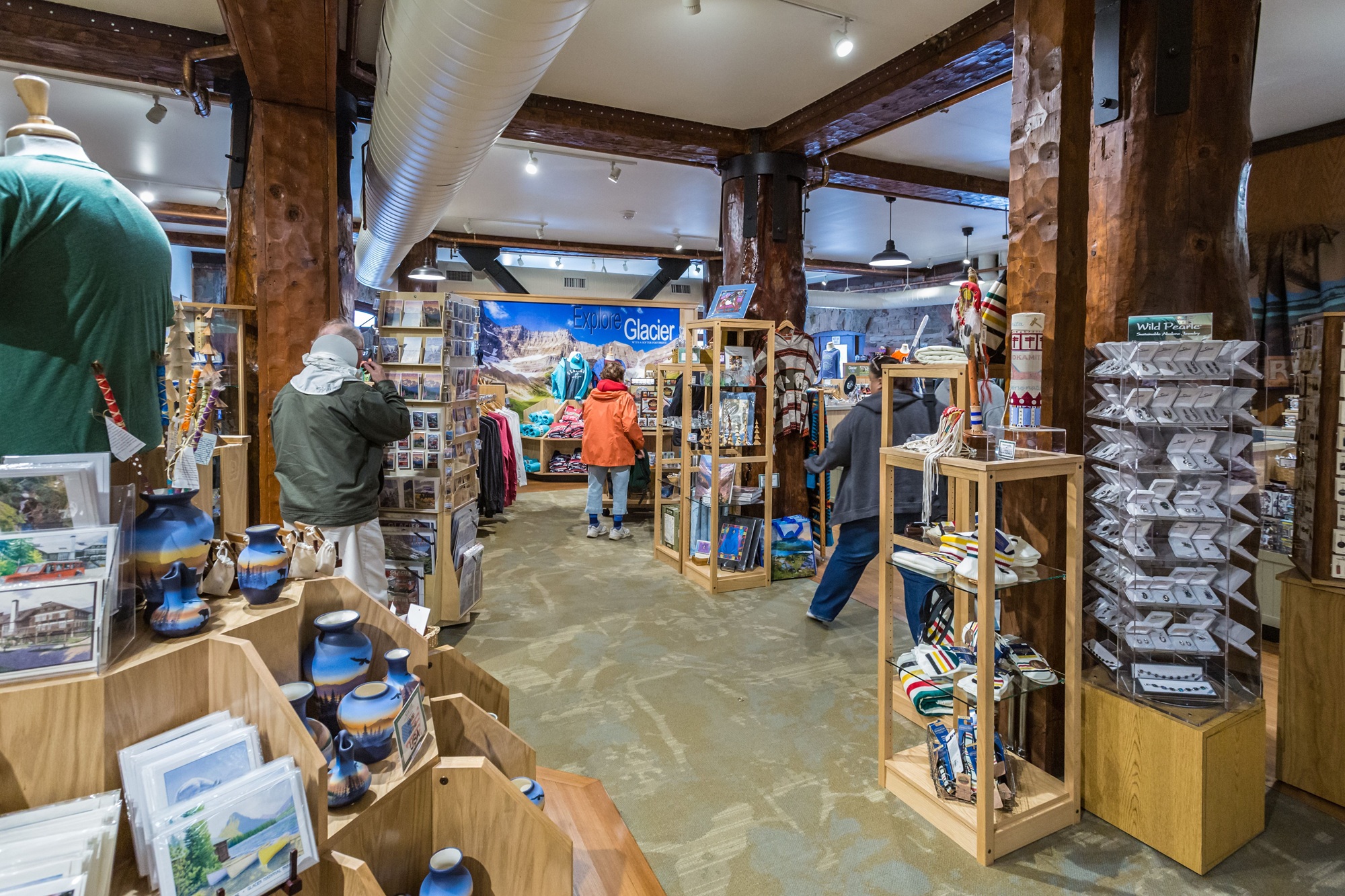 Tourists shopping at the gift shop of the Many Glacier Hotel in Glacier National Park, Montana. (Ron Buskirk/UCG/Universal Images Group via Getty Images)