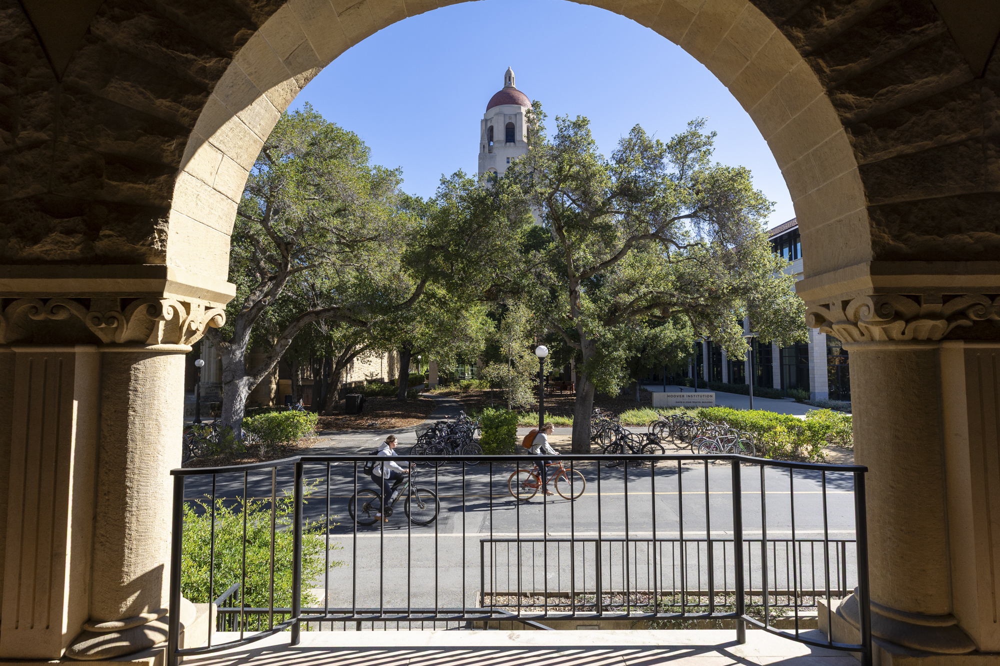 A view of Hoover Tower on the Stanford University campus in Stanford on Oct. 29, 2025. (Gustavo Hernandez/KQED)
