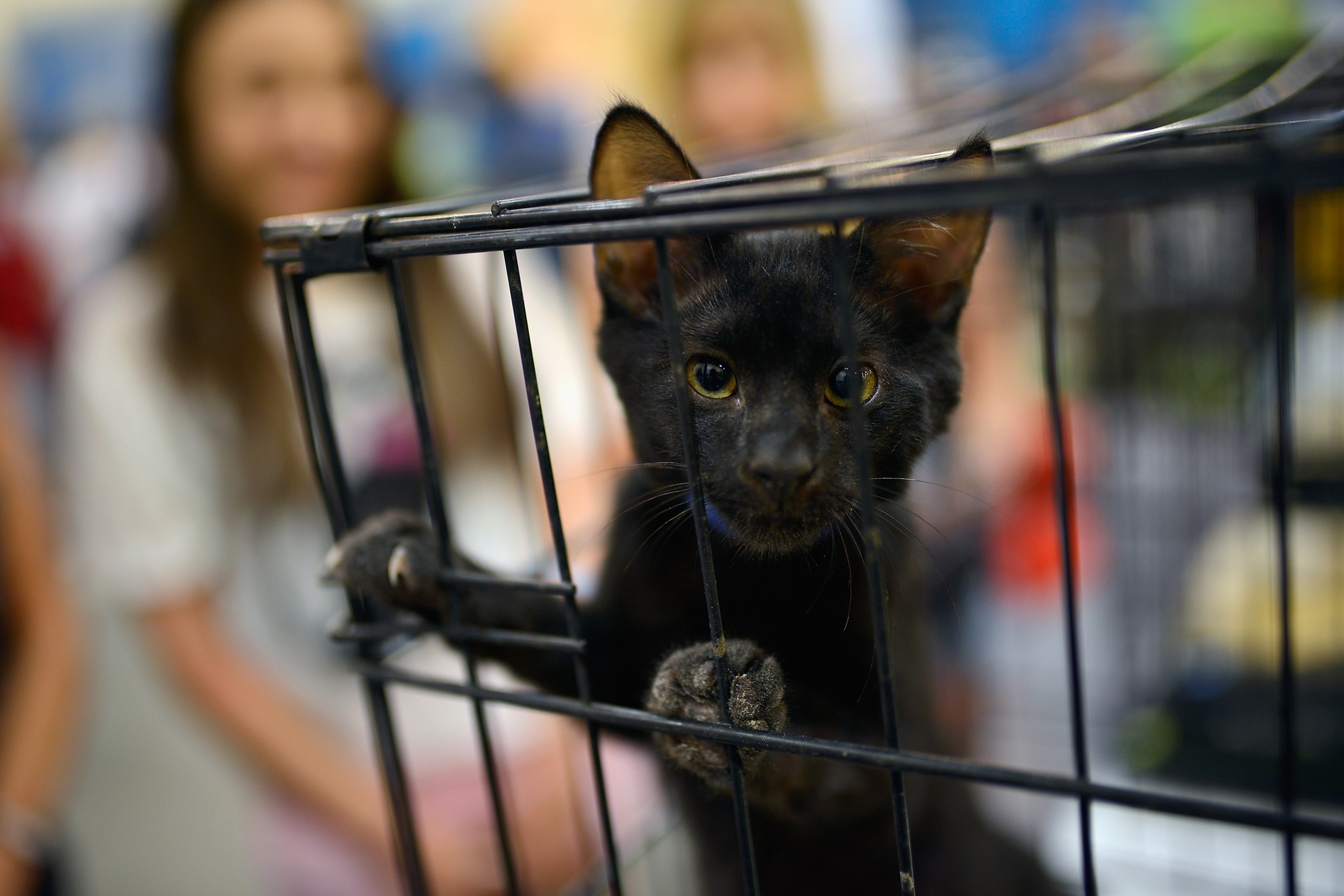 A cat in the adoption center at CatCon Worldwide 2018 at Pasadena Convention Center on Aug. 4, 2018, in Pasadena, California. (Chelsea Guglielmino/Getty Images)