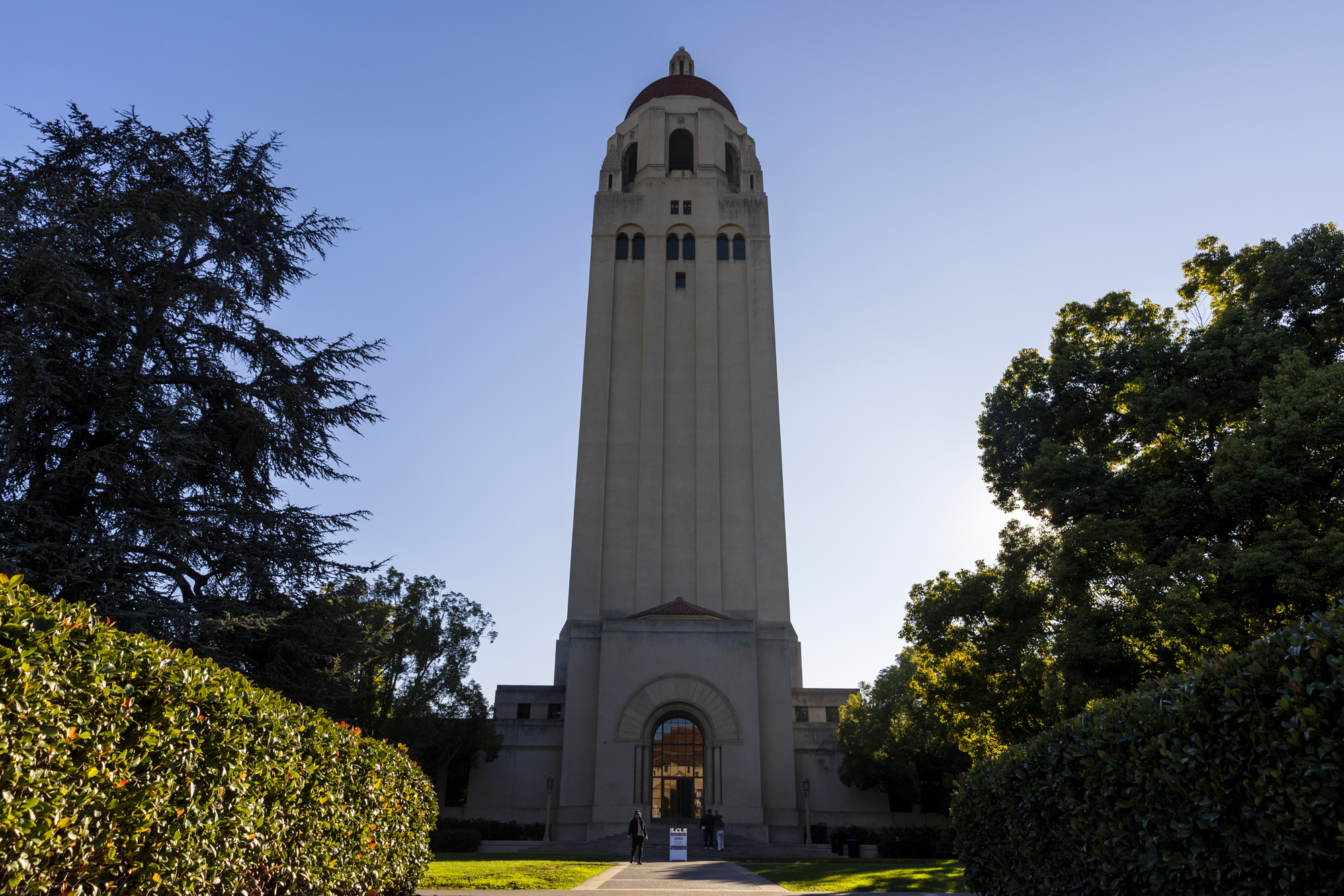 Hoover Tower at Stanford University in Palo Alto on Dec. 10, 2025. (Tâm Vũ/KQED)