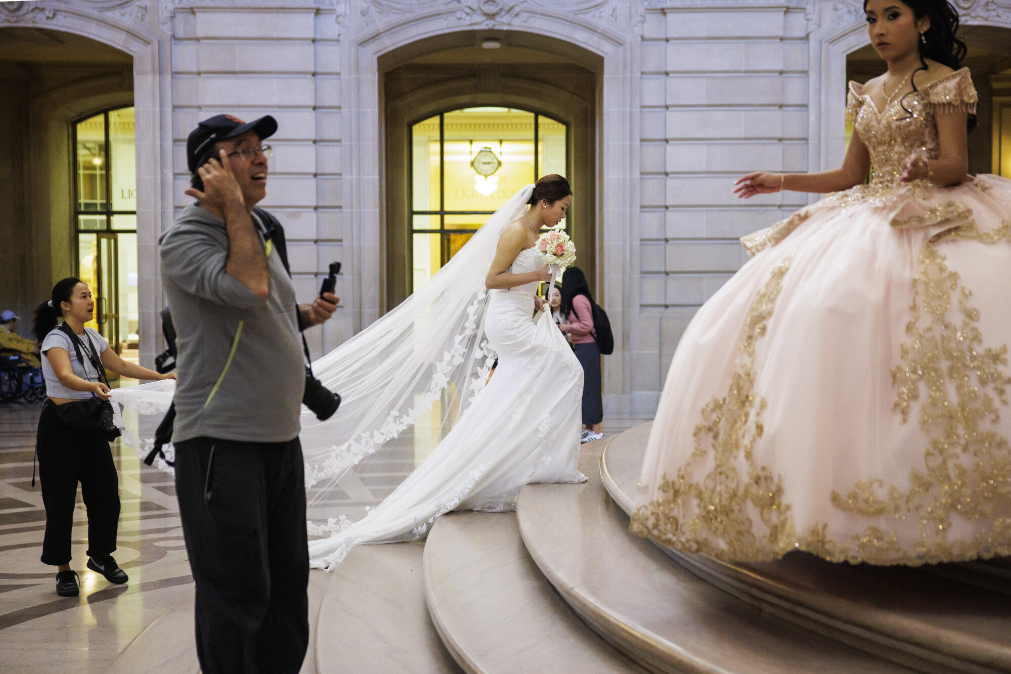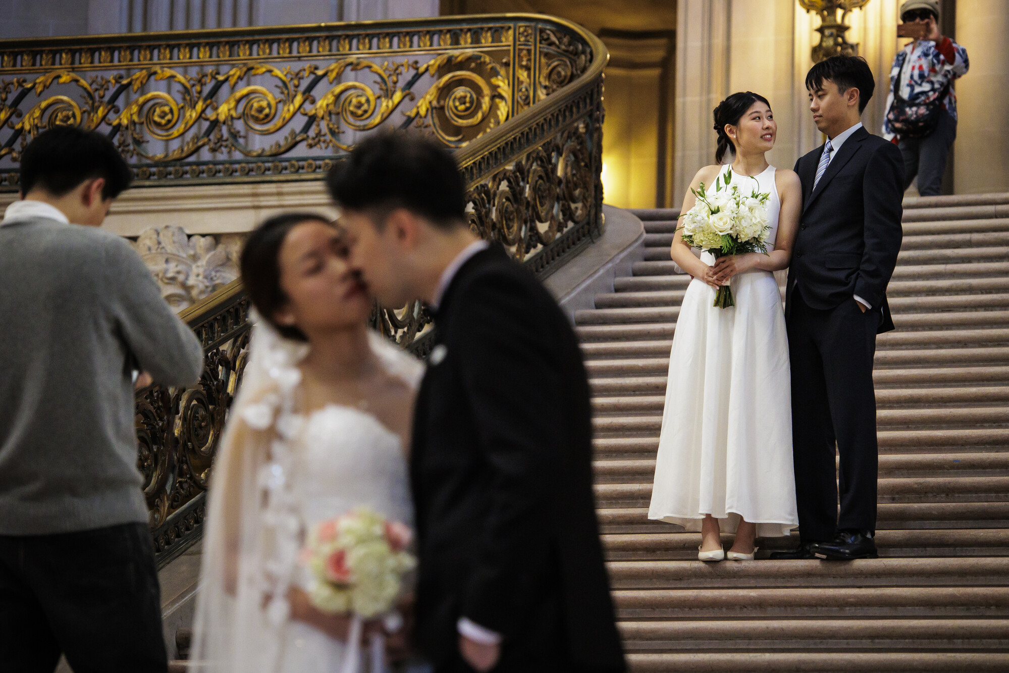 For her, the busiest months for weddings at San Francisco City Hall are February, with Valentine’s Day and “2” being a lucky number in some cultures, and June, for Pride Month.