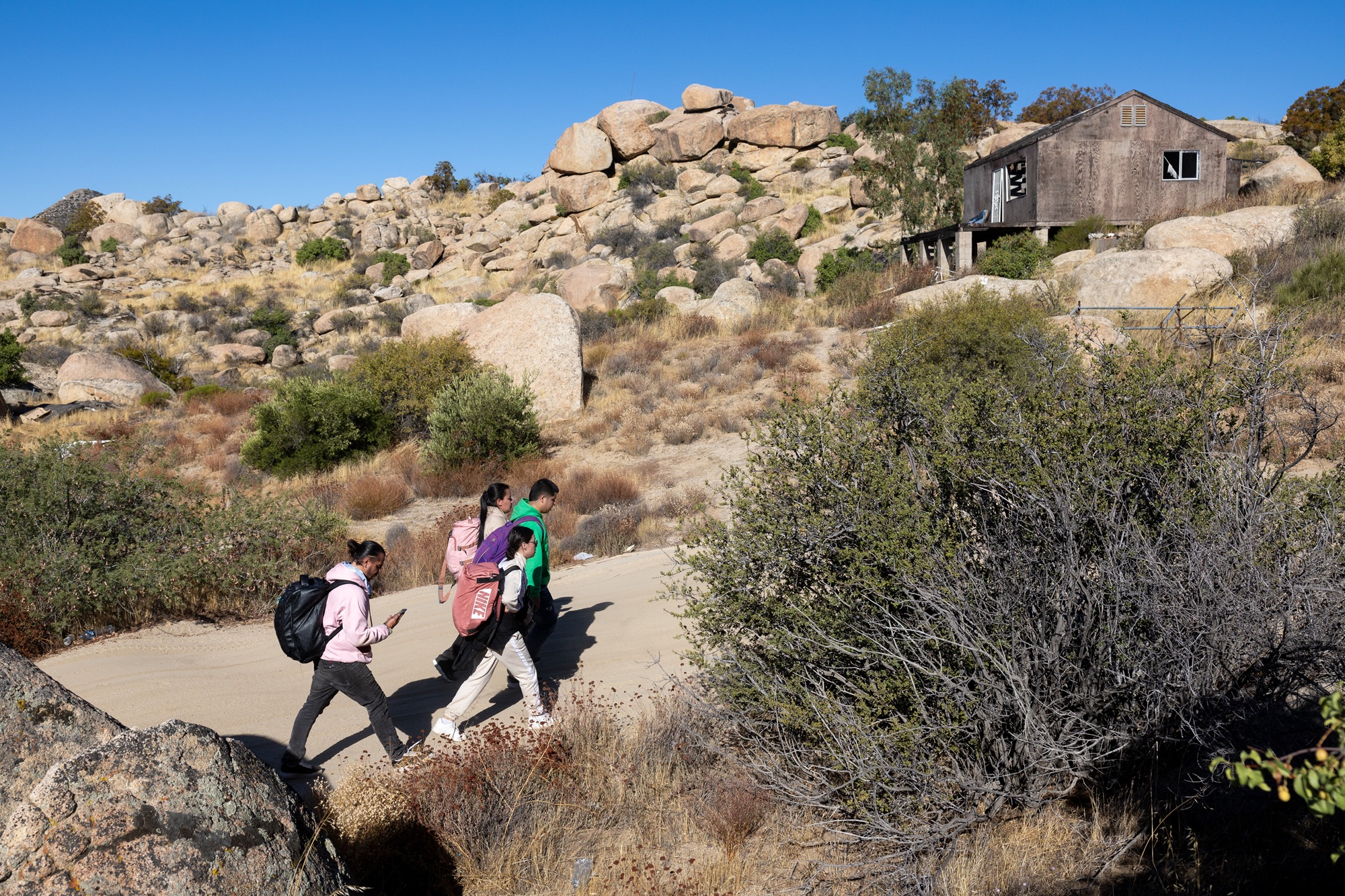 Colombian asylum-seekers walk through the desert after crossing the U.S.-Mexico border on Sept. 22, 2024, near Jacumba Hot Springs, California. (John Moore/Getty Images)