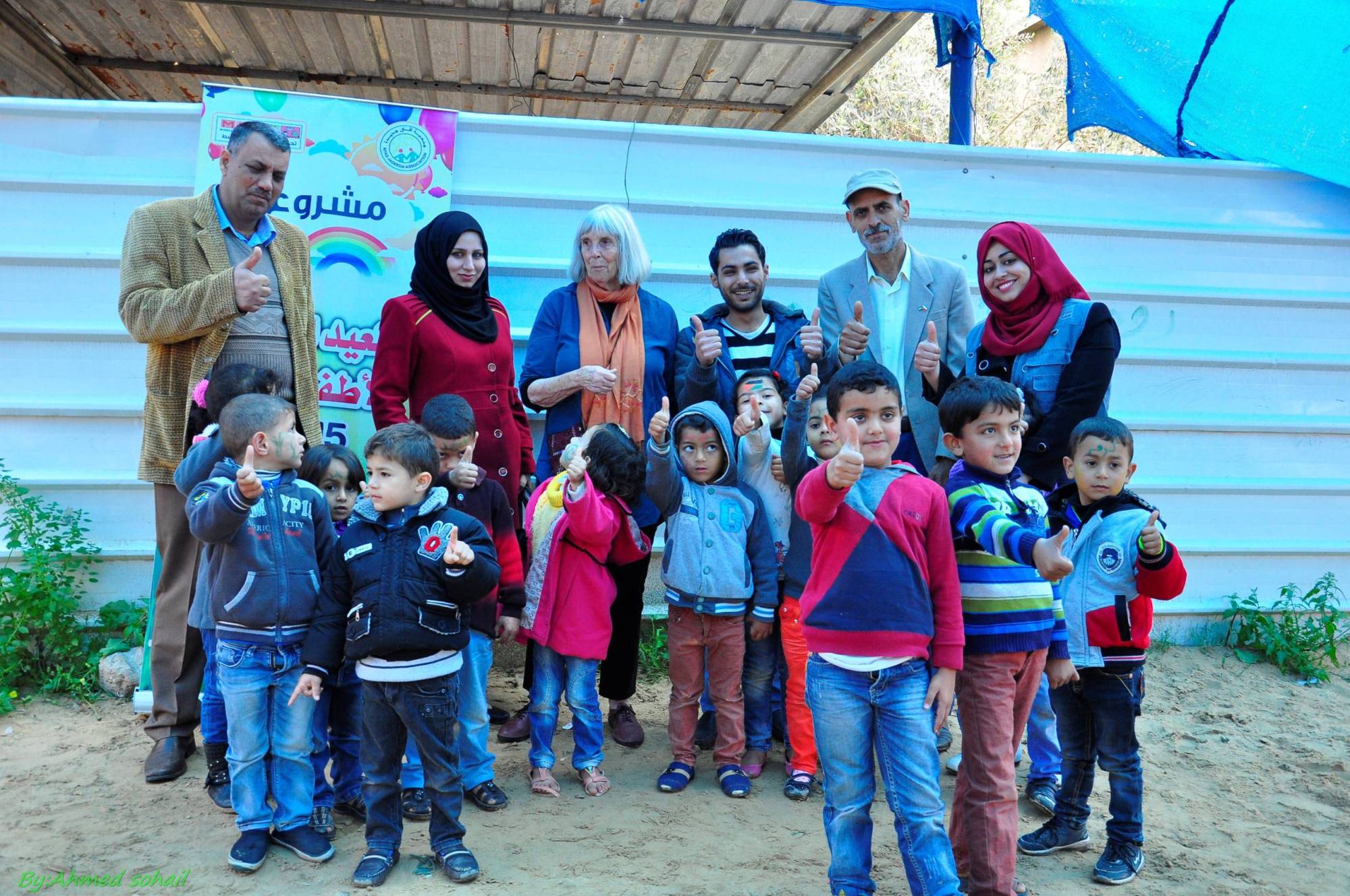 Barbara Lubin and other Middle East Children’s Alliance staff pose with children in Gaza in 2012. (Courtesy of the Middle East Children's Alliance)
