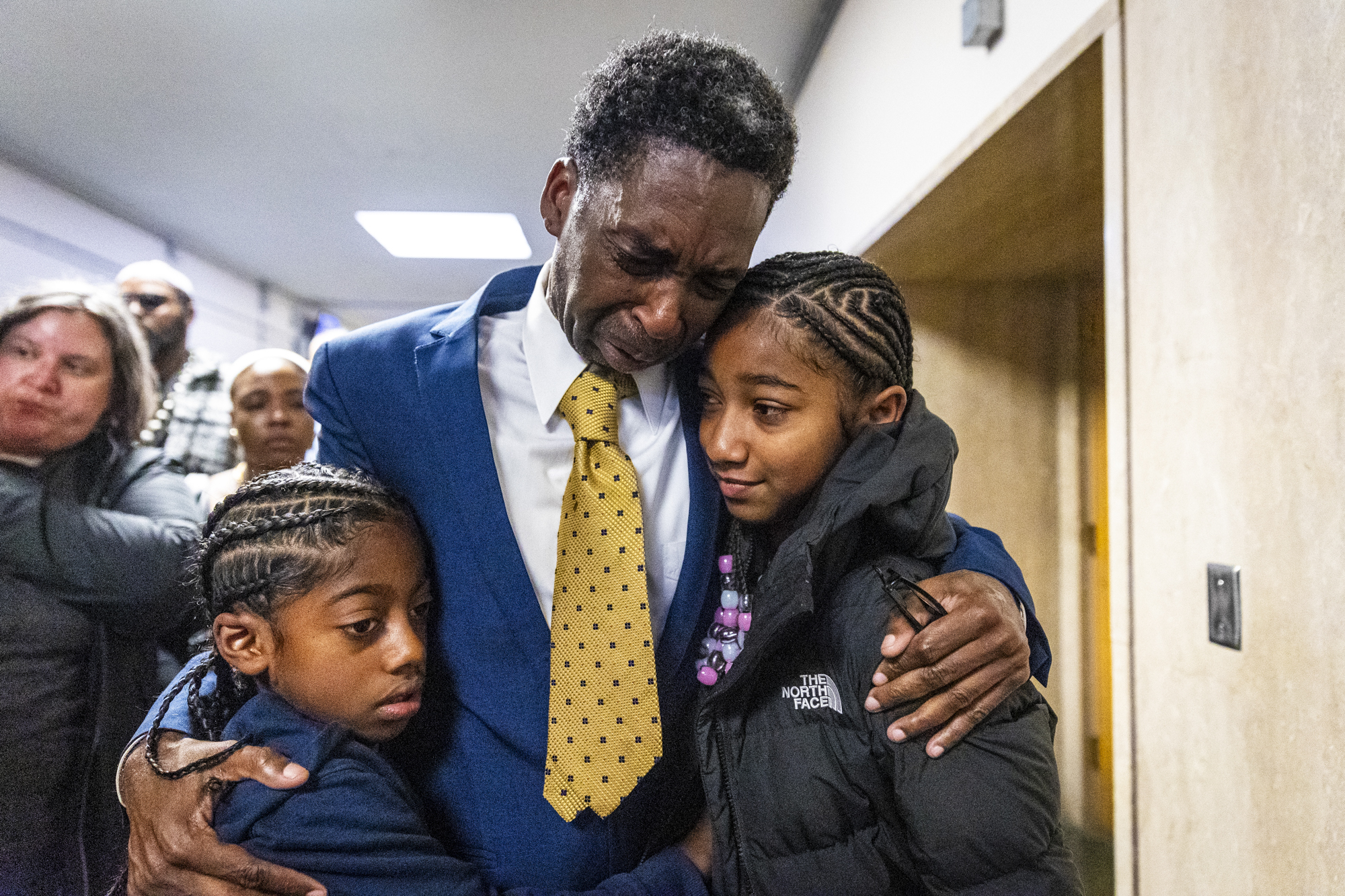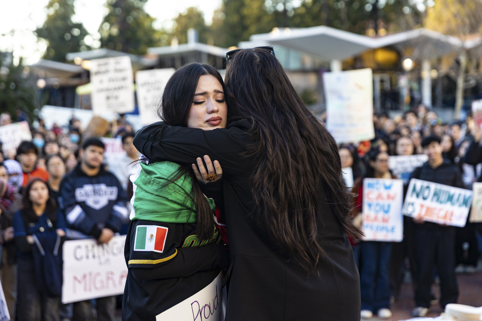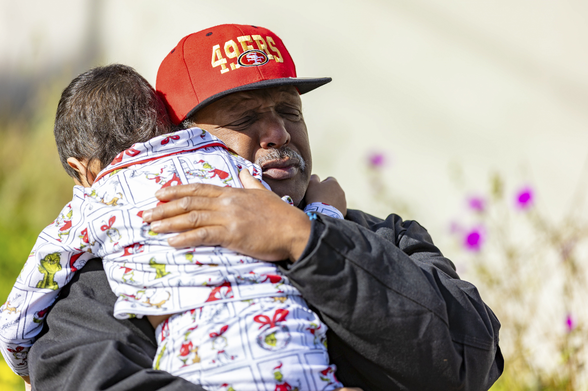 Anthony Thomas, father of Antoine Thomas, who died in an early morning shooting, hugs his 4-year-old grandson Adon in San Francisco on Jan. 2, 2025. The shooting, at the 1000 block of Tompkins Avenue, left one victim pronounced dead at the scene and another transported to a hospital with life-threatening injuries. (Gina Castro/KQED)San Francisco Mayor-elect Daniel Lurie receives a communal blessing during an Interfaith Ceremony at Congregation Emanu-El in San Francisco on Jan. 7, 2025, the evening before his inauguration. (Beth LaBerge/KQED)Destruction in downtown Altadena, after the Eaton Fire swept through the area northeast of Los Angeles, on Jan. 9, 2025. (Beth LaBerge/KQED)Altadena resident Taylor Williams, 17, goes through pieces of her teacup collection from the home she shared with her family after it was destroyed in the Eaton Fire northeast of Los Angeles on Jan. 9, 2025. (Beth LaBerge/KQED)Sadako Nimura Kashiwagi, 91, holds a photo of her parents, Juninhi Nimura and Shizuko Nimura, at her home in Berkeley on Jan. 15, 2025. Kashiwagi was incarcerated at Tule Lake concentration camp at the age of 9, where she lived with her family for four years. (Gina Castro/KQED)Chris Northart, with the Department of Water Resources’ Statewide Monitoring Network Unit, and a participant of the Snow Science School, uses a magnification lens to measure the size of snow granules from the snowpack in a field outing near Soda Springs on Jan. 16, 2025. (David M. Barreda/KQED)Regular Timotha Doane sits at a table at Wild Side West in San Francisco’s Bernal Heights neighborhood on Jan. 28, 2025. Founded in 1962, Wild Side West is a historic lesbian bar that began in Oakland before relocating to San Francisco, where it became a gathering space known for its eclectic decor, lush garden, and deep roots in the LGBTQ+ community. (Beth LaBerge/KQED)Left: Kimberly Lopez, a senior at UC Berkeley, speaks to hundreds of students and supporters rallying in solidarity with their undocumented classmates as the Trump administration begins to carry out nation-wide mass deportations, at Sproul Plaza at UC Berkeley in Berkeley on Jan. 29, 2025. Right: Maya Gill, center, holds up a sign that reads, “Jesus told us to love our neighbor not to deport them.” (Gina Castro/KQED)(left) Student Nicole Nuñez Rivera gets emotional and hugs DACA recipient Ana Rivera, right, during a rally against the Trump administration’s promises to carry out mass deportations, at UC Berkeley in Berkeley on Jan. 29, 2025. (Beth LaBerge/KQED)