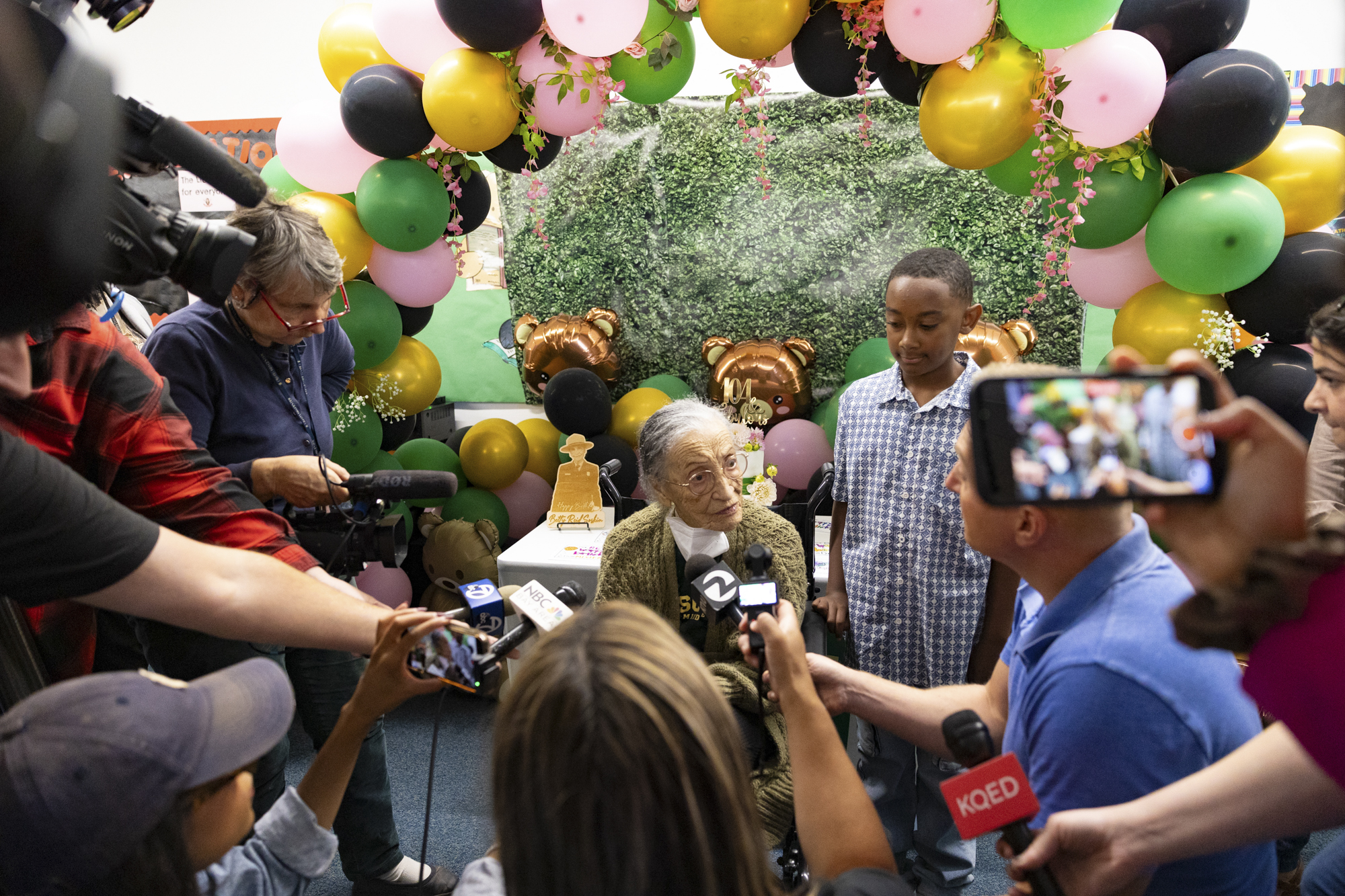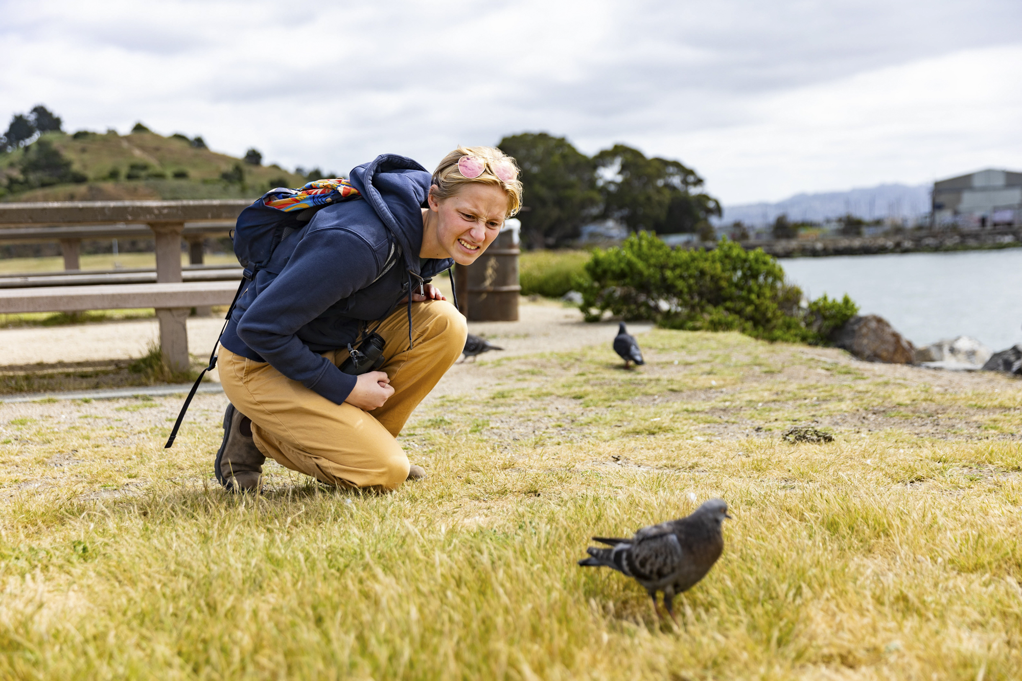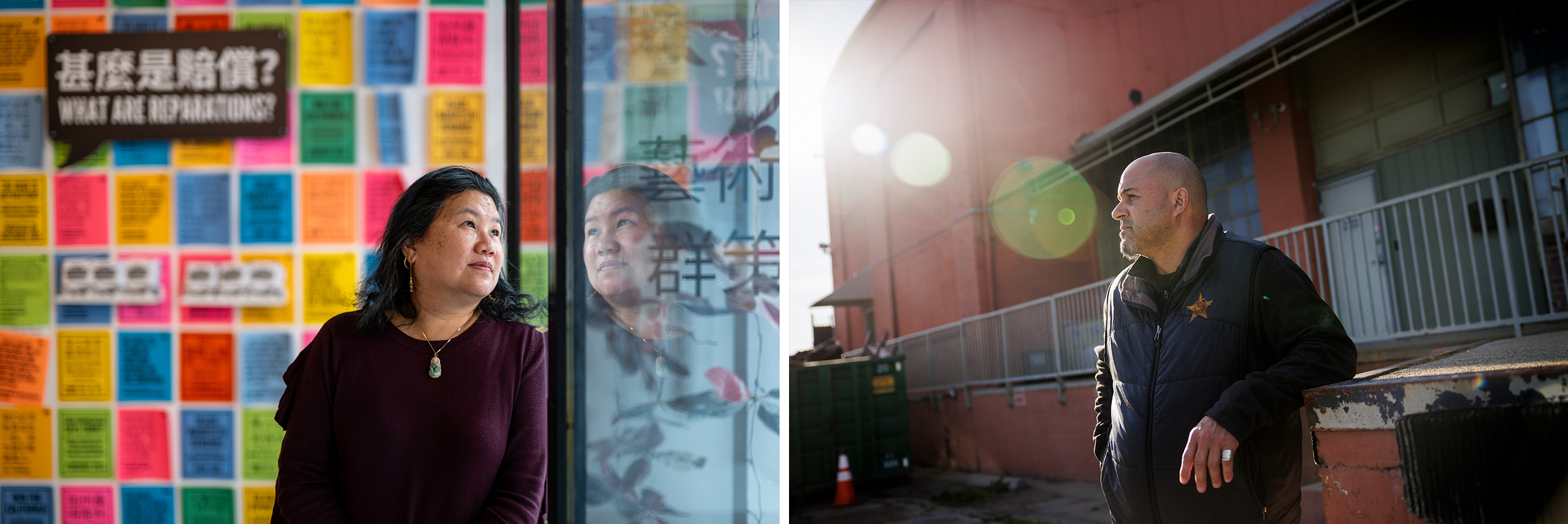 Tashenia Pearson stands beside the wall separating her property from her neighbors’ in Livermore on April 9, 2025. Pearson’s parents bought the property in Livermore in 1971, only to discover the illegally built wall, which effectively gives 740 square feet of Pearson’s property to their neighbor. (Martin do Nascimento/KQED)R-Evolution, a 45-foot metal sculpture of a giant naked woman that is meant to symbolize feminine strength and liberation, by artist Marco Cochrane, at the Embarcadero Plaza on April 10, 2025. (Gina Castro/KQED)Sandy Stone, 88-year-old legendary audio engineer and trans woman who worked with rock ’n’ roll greats and was the in-house engineer at feminist label Olivia Records in the 1970s, in her home in Aptos on April 14, 2025. (Florence Middleton for KQED)Supporters of Oakland mayoral candidate Barbara Lee dance to a live band on election night in Oakland on April 15, 2025. (Aryk Copley for KQED)Birders Daniela Sanchez (left) and Christopher Henry look for birds at Crissy Field in San Francisco and the Baylands Nature Preserve in Palo Alto, respectively, on April 16, 2025. (Gina Castro/KQED)Sadie Cosby examines a pigeon walking with a limp at the Miller/Knox Regional Shoreline in Richmond on April 16, 2025. Cosby has been birding for 4 years and is a member of the California Young Birders’ Club. (Gina Castro/KQED)Sam Liang weighs medical herbs at his shop, Run Feng Hai Wei Chinese Herbal Inc., in San Francisco’s Chinatown neighborhood on April 21, 2025. Business owners in San Francisco’s Chinatown said they were struggling to stay afloat, facing declining sales and an uncertain future, in the face of the U.S.-China trade war. (Beth LaBerge/KQED)Left: Imported items fill the wall at Beijing Shopping Center in San Francisco’s Chinatown neighborhood on April 21, 2025. Right: Kiki Krunch, left, and Kalypso pose for a photo at the Portsmouth Square pedestrian bridge in San Francisco’s Chinatown on April 30, 2025. The 2024 and ’23 winners of the GLBTQ+ Asian Pacific Alliance drag pageant led the 2025 Chinatown Pride procession, visiting landmarks such as the Grant Street nightlife district, home in the 1930s and ’40s to underground queer speakeasies and tourist-y Chinese American nightclubs that featured “female impersonation” shows. (Beth LaBerge/KQED; Gina Castro/KQED)Kiki Krunch (left) takes a photo with Fontaine Hu, 81, in San Francisco’s Chinatown on April 30, 2025. (Gina Castro/KQED)
