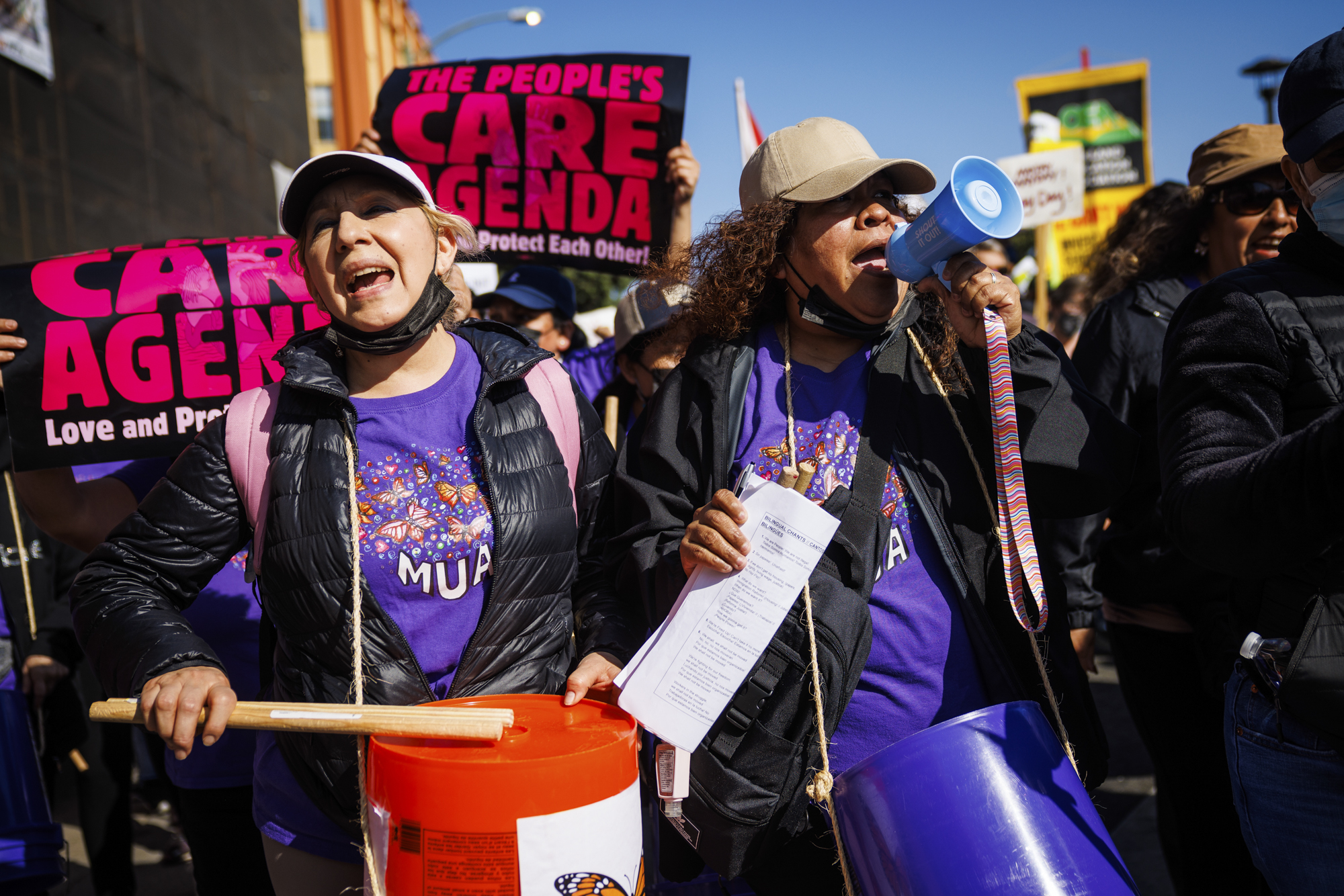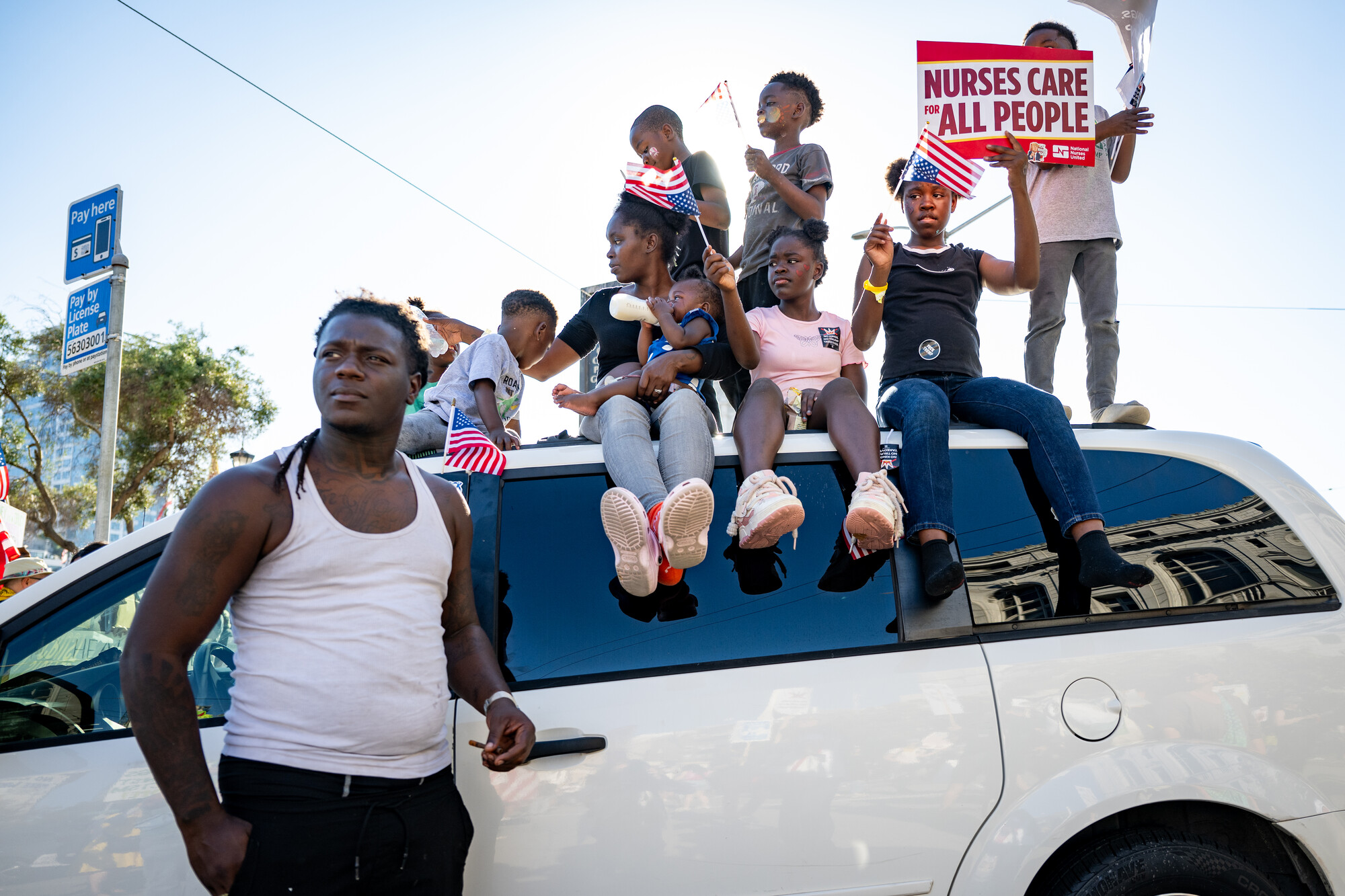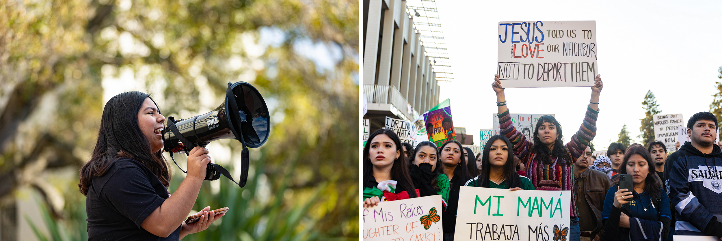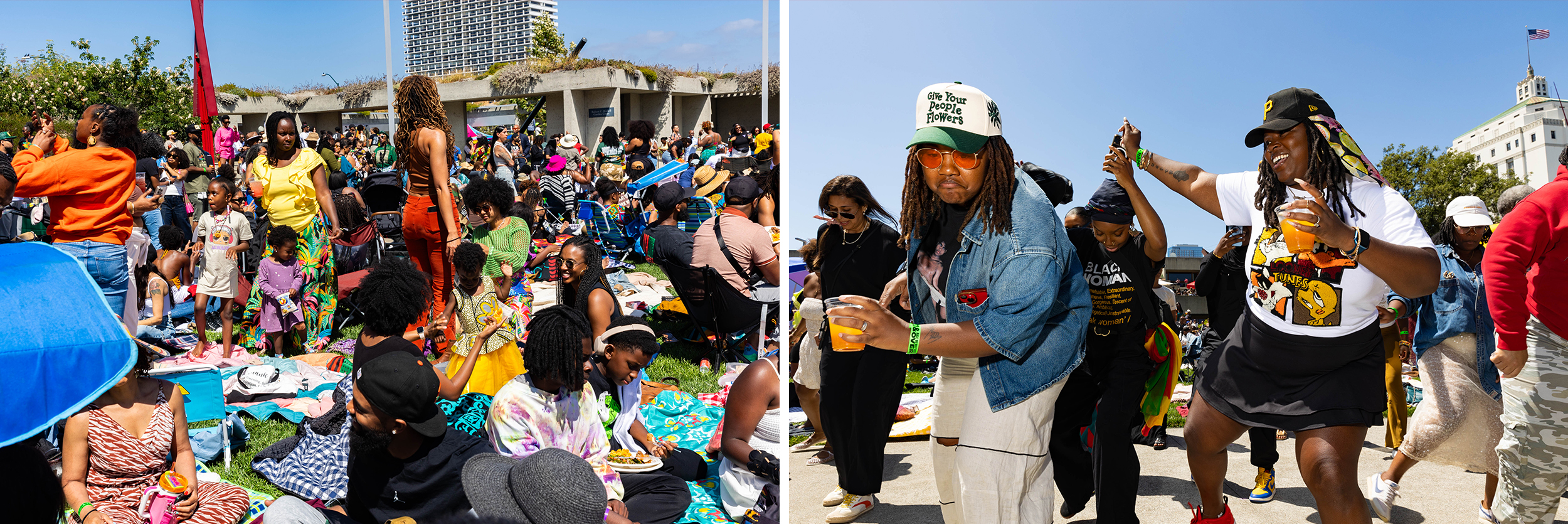 Jayvon Wilson (center) rallies alongside students, staff, and supporters outside the Treasure Island Job Corps Center in San Francisco on June 5, 2025, protesting the facility’s closure, which they say could leave at-risk youth homeless. (Beth LaBerge/KQED)Eric Garcia, who performs as Churro Nomi, co-director of Detour Productions and producer of the monthly queer cabaret Clutch The Pearls, poses for a photo at the Make Out Room in San Francisco on June 6, 2025. “This isn’t just about money, it’s about controlling narrative, visibility and power,” says Garcia, about arts organizations that have abandoned their DEI programming and reconfigured or erased their websites’ DEI commitments. “We’re witnessing a deliberate effort to police not only what stories are told, but who is allowed to tell them.” (Beth LaBerge/KQED)Protestors march in the Mission District in San Francisco in opposition to the Trump Administration’s immigration policy and enforcement on June 9, 2025. (Martin do Nascimento/KQED)Left: Daniella holds up a Mexican flag during a No Kings Day protest in San José on June 14, 2025. Right: Thousands of protesters march at the No Kings protest in Oakland on June 14, 2025. (Aryk Copley for KQED; Gina Castro/KQED)Supporters cheer from their cars as protesters march down Van Ness Ave. in San Francisco as part of the No Kings protest on June 14, 2025. (Martin do Nascimento/KQED)Congresswoman Lateefah Simon addresses hundreds of protesters at Frank H. Ogawa Plaza during the No Kings protest in Oakland on June 14, 2025. (Gina Castro/KQED)Left: People fill the courtyard at the Oakland Museum of California in Oakland for the Hella Juneteenth festival on June 19, 2025. Right: Festivalgoers dance at the Hella Juneteenth festival at the Oakland Museum of California on June 19, 2025. (Gina Castro/KQED)Jordyn Johnson, 9, gets the continent of Africa painted on her face at the Hella Juneteenth festival at the Oakland Museum of California on June 19, 2025. (Gina Castro/KQED)