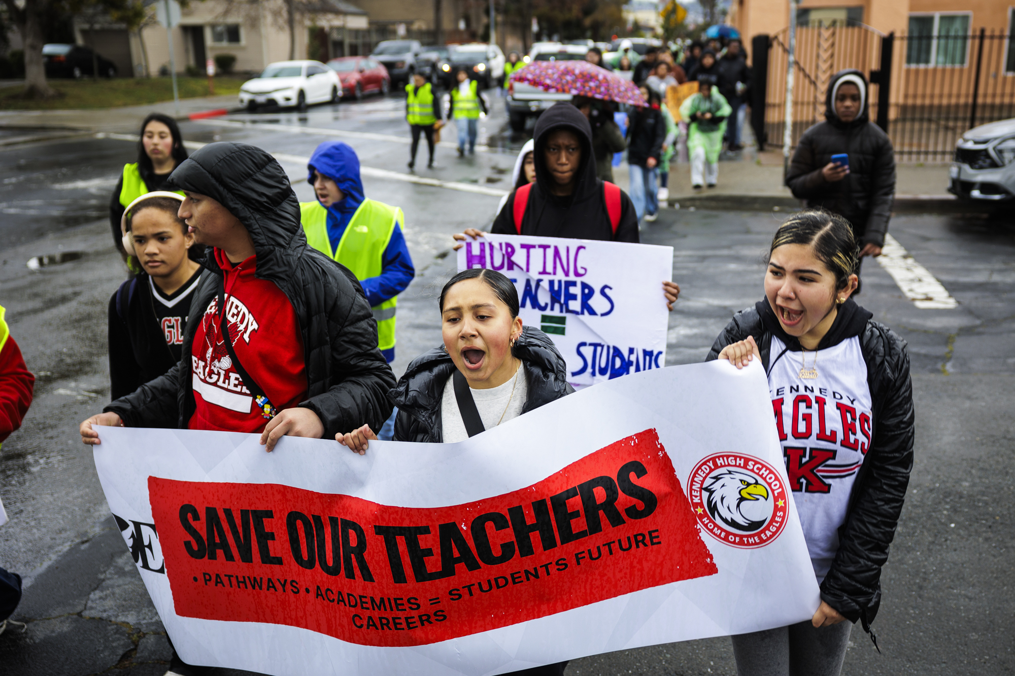 West Contra Costa Unified School District teachers strike at Marina Bay Park in Richmond on Dec. 5, 2025. (Tâm Vũ/KQED)Jerry Nagano poses with the California Theatre’s 1928 Wurlitzer lobby organ in San José on Dec. 10, 2025. Nagano, a veteran theatre-organ performer and retired Stanford systems engineer, has been a fixture in California’s organ community for decades. (Gustavo Hernandez/KQED)A holiday display sits in front of a home on Christmas Tree Lane on the 3200 block of Thompson Avenue in Alameda on Dec. 10, 2025. The tradition of holiday displays here dates back to the early 1930s. (Beth LaBerge/KQED)Left: Holiday lights cover a home on Christmas Tree Lane. Right: Michael Martin sits with his handmade Wrap-o-Matic holiday display in front of his home on Christmas Tree Lane. (Beth LaBerge/KQED)Left: An assortment of dishes at Chef Chu’s in Los Altos on Dec. 11, 2025. Chef Chu’s is a family-run business, owned by Lawrence Chu, which has been operating since 1970 and is known not only for its food but also as a favorite for celebrities and tech innovators. Right: Jzhuang Qingqiang (left) and Kevin Ho prepare meals in the kitchen at Chef Chu’s. (Tâm Vũ/KQED)Lawrence Chu, also known as Chef Chu, garnishes a plate of sweet and sour pork at Chef Chu’s. (Tâm Vũ/KQED)Filmmaker and journalist Kevin Epps (center) embraces his children Kamia (left) and Kamari at the Superior Court of San Francisco after a jury found him not guilty of the murder of his former brother-in-law, Marcus Polk, in San Francisco on Dec. 15, 2025. The jury found Epps not guilty of the murder but did find him guilty of voluntary manslaughter. (Tâm Vũ/KQED)Faith leaders and immigrant advocates block the entrance to the ICE field offices in San Francisco on Dec. 16, 2025. Demonstrators chained themselves to the ICE office’s doors, blocked intersections and vehicle access, and sang hymns. (Tâm Vũ/KQED)Department of Homeland Security officers detain demonstrators outside of the ICE field offices in San Francisco. At least 20 people were handcuffed. (Beth LaBerge/KQED)Silvia Matias and her daughter Maria wait for their bus at the Eastmont Transit Center in Oakland on Dec. 17, 2025. Transit advocates are calling attention to recent updates to Clipper that fail to extend savings to people who pay with cash to ride AC Transit. (Martin do Nascimento/KQED)