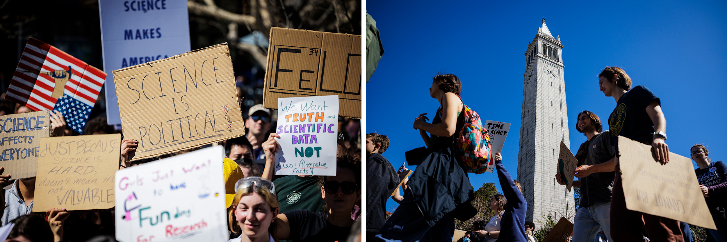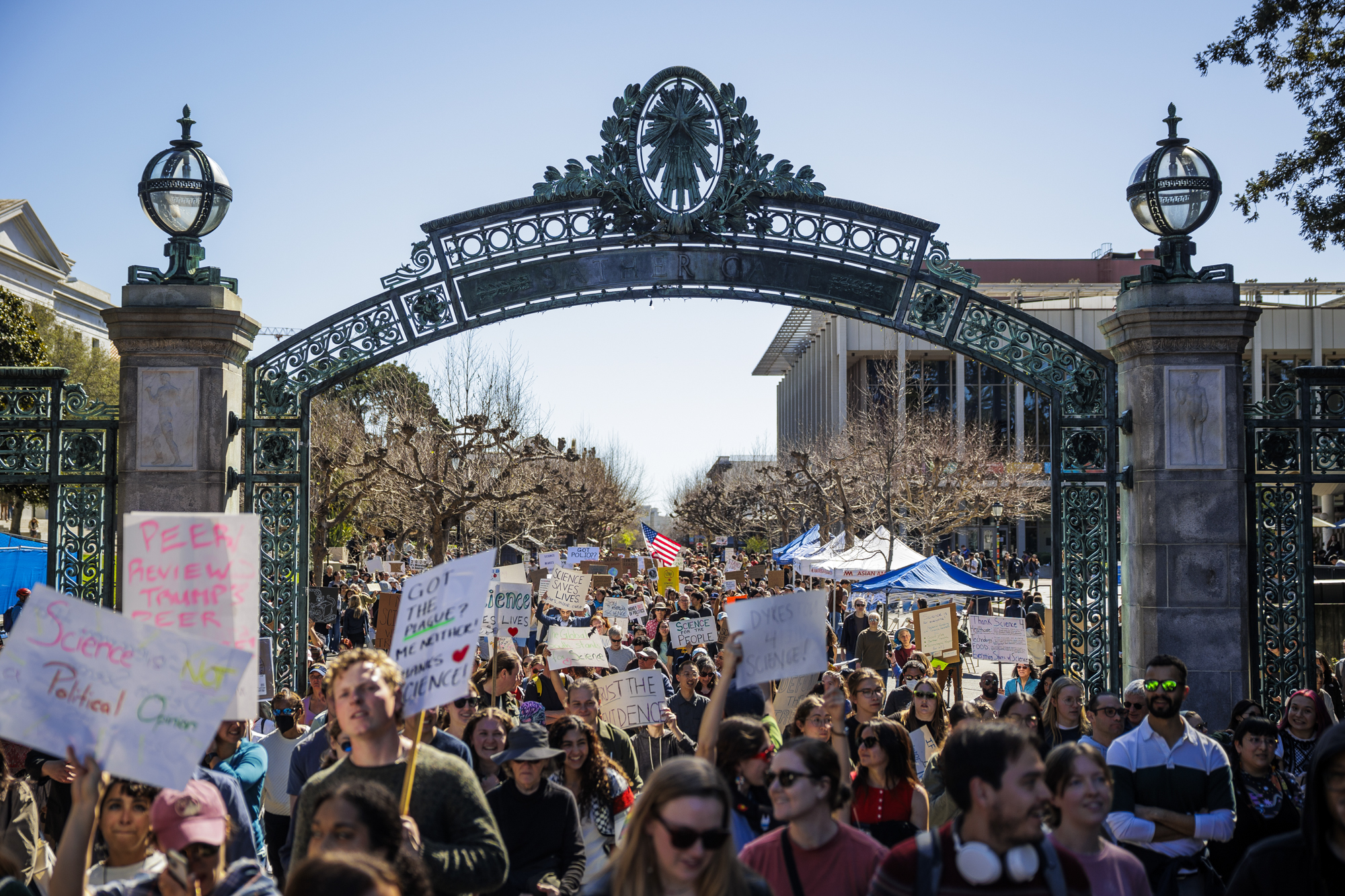 A march through the UC Berkeley campus in association with the national Stand Up for Science day of action in Berkeley on March 7, 2025. (Martin do Nascimento/KQED)Marchers hold up signs including one that reads “Science is political” and march through the UC Berkeley campus in Berkeley on March 7, 2025. (Martin do Nascimento/KQED)Besan’s International Market is a halal butcher, deli, and Middle Eastern market in San Bruno. Year-round, it’s a go-to spot for the Arab, North African and Middle Eastern folks in this community. During Ramadan, customers come in and out for their groceries for iftar meals when they break fast during Ramadan. (David M. Barreda/KQED)Valerie Aquino and other students from Richmond’s John F. Kennedy High School stage a walkout and march to the West Contra Costa Unified School District Offices to protest impending layoffs as part of cuts to the district’s budget in Richmond on March 12, 2025. (Martin do Nascimento/KQED)Eugene Tssui sketches in a notebook at his exhibition at the Rotten City Cultural District in Emeryville on March 17, 2025. The gallery featured his nature-inspired architectural designs, including photos of the renowned “Fish House,” along with his clothing designs and art. (Beth LaBerge/KQED)Rep. Ro Khanna holds a town hall meeting at the MLK Community Center in Bakersfield on March 23, 2025. In three such events, Khanna urged residents of Republican-held congressional districts in California to organize against the Trump administration’s proposed cuts to programs like Medicaid and the wider social safety net. (Martin do Nascimento/KQED)Left: A line of people waiting to enter the town hall meeting with Rep. Ro Khanna. Right: Audrey Chavez and others listen at as Rep. Ro Khanna speaks. (Martin do Nascimento/KQED)Santana “Twinks” Vasquez cuts Angel Filimoehala’s hair at Steel and Strand barbershop in San Francisco on March 26, 2025. Twinks offered free haircuts for the month of March to honor trans visibility. (Gina Castro/KQED)Aslan Scardina lies in a patch of stinging nettle at Zorthian Ranch on March 28 in Altadena. Scardina was living on the Ranch before it was destroyed in the Eaton fire. “I didn’t love plants until I met nettle,” she says. (Stella Kalinina for KQED)Will Lohf waves an LGBTQ+ flag during a march for trans youth in Kentfield on March 31, 2025. Activists and community members marched in the Marin County community where Gov. Gavin Newsom recently purchased a home as part of International Transgender Day of Visibility, which highlights discrimination faced by trans people worldwide. (Aryk Copley for KQED)